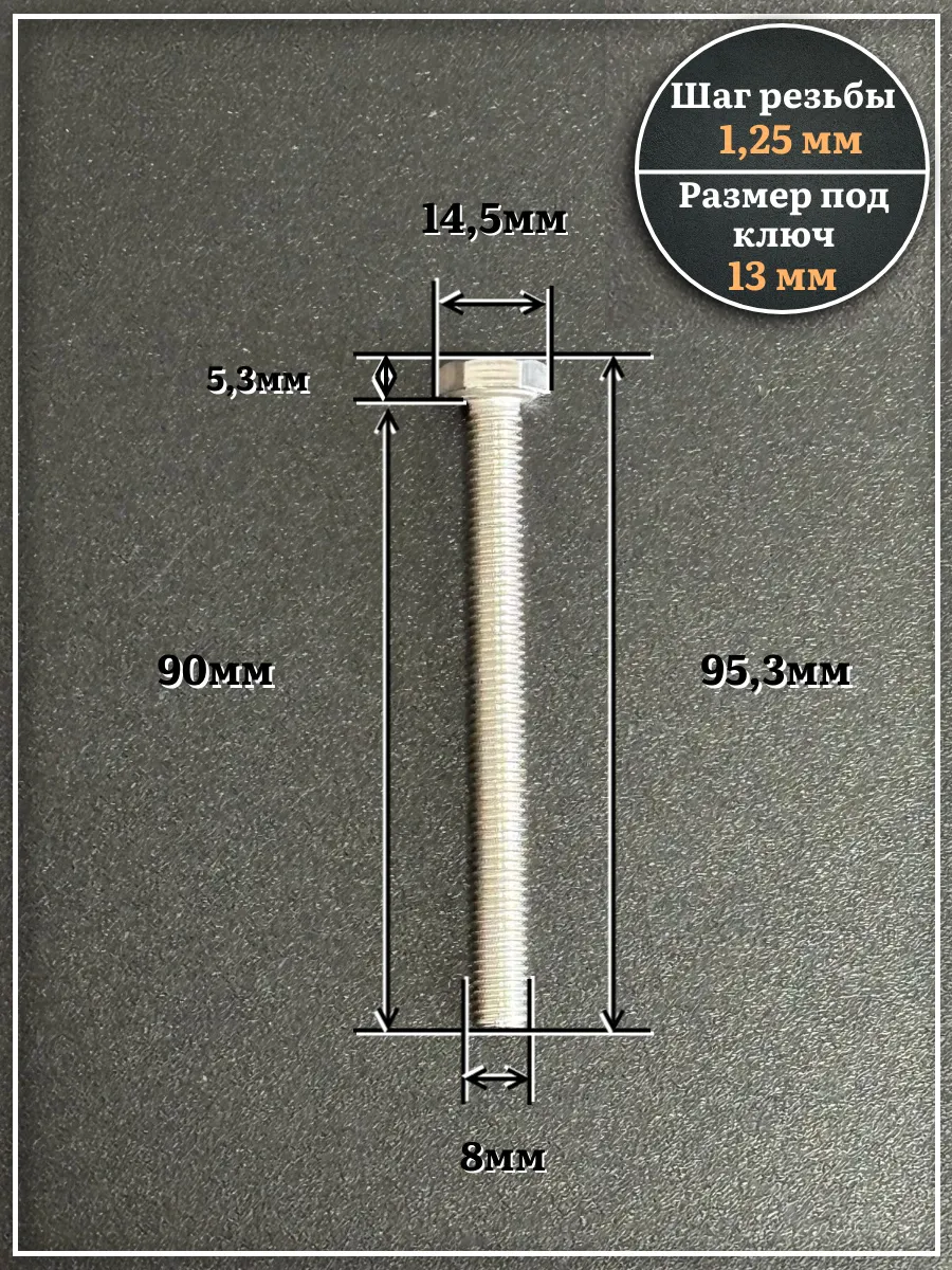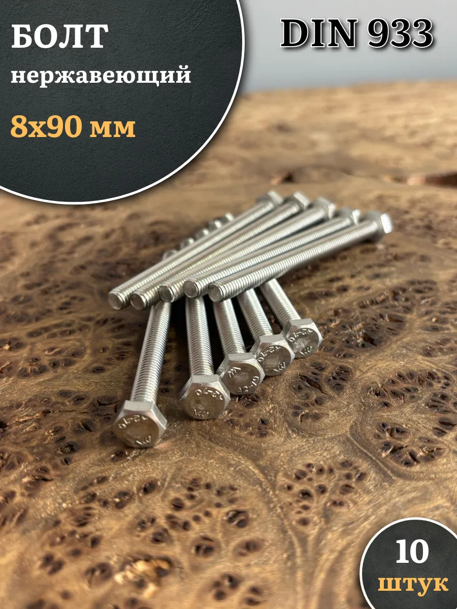 Болт нержавеющий 8х90 мм DIN933, 10 шт.