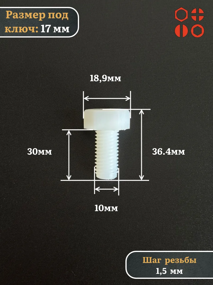 | Болт полиамидный 10х30 мм DIN 933 (пластик), 10 шт. | бп1030933ф10 | 1 шт. |