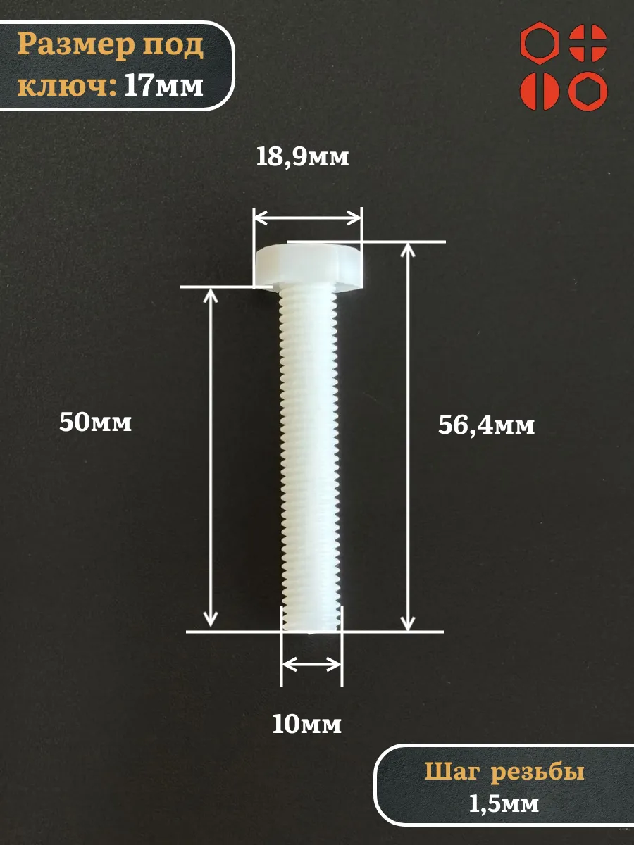 | Болт полиамидный 10х50 мм DIN 933 (пластик), 50 шт. | бп1050933ф50 | 1 шт. |