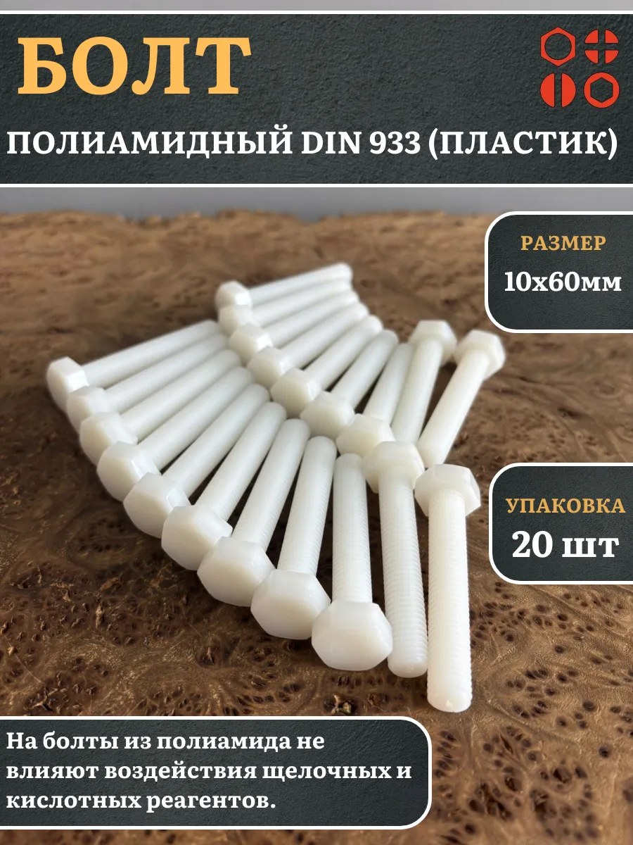 Болт полиамидный 10х60 мм DIN 933 (пластик), 4 шт. бп1060933ф4 1 шт.