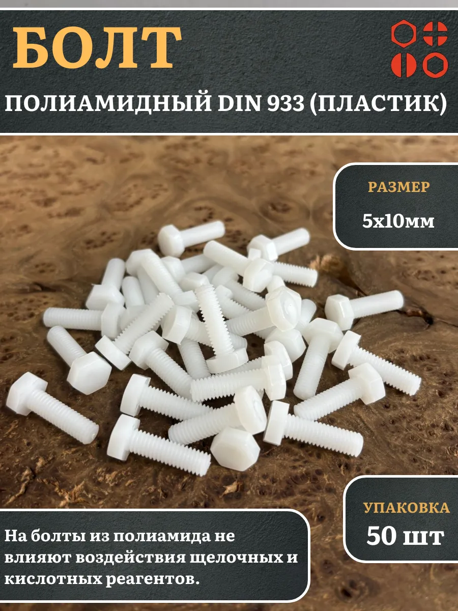 Болт полиамидный 5х10 мм DIN 933 (пластик), 50 шт.