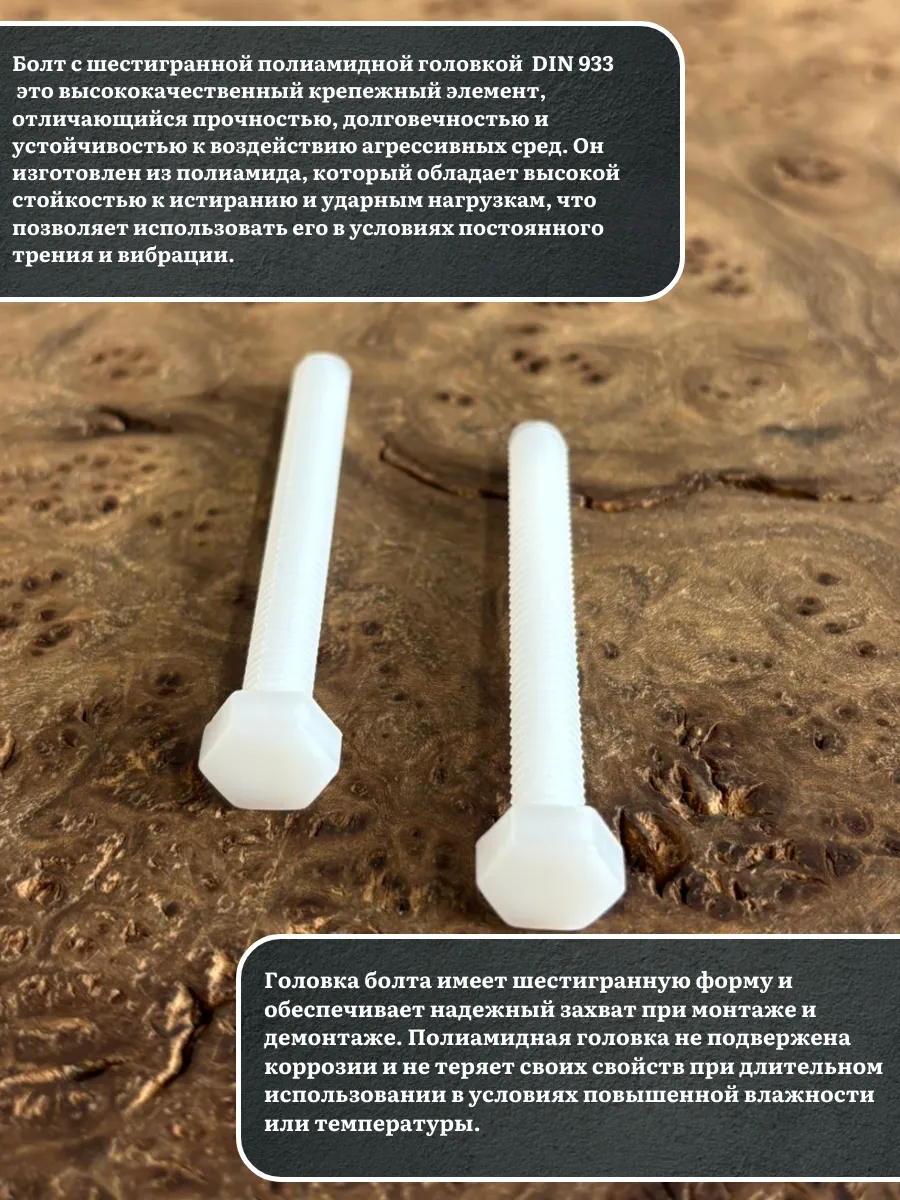 Болт полиамидный 6х50 мм DIN 933 (пластик), 10 шт.