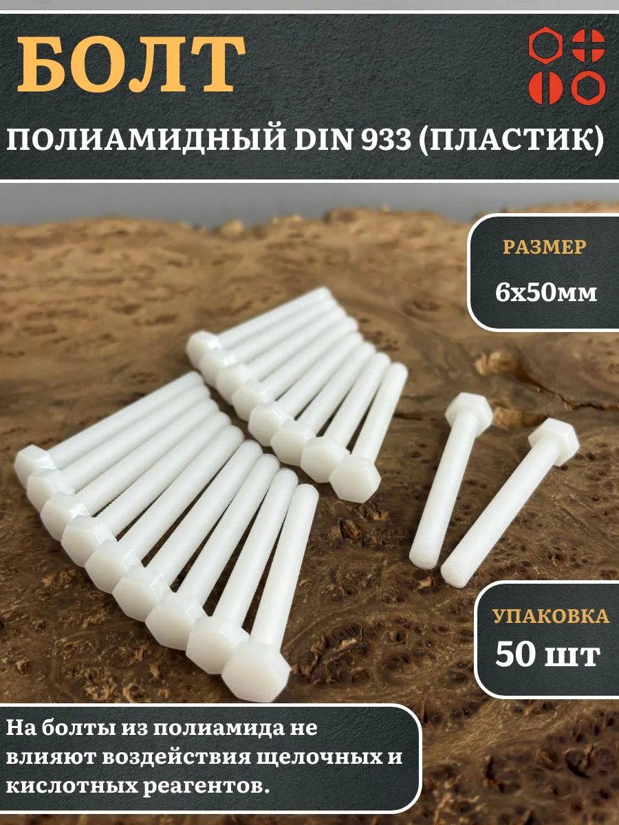 Болт полиамидный 6х50 мм DIN 933 (пластик), 4 шт. бп650933ф4 1 шт.