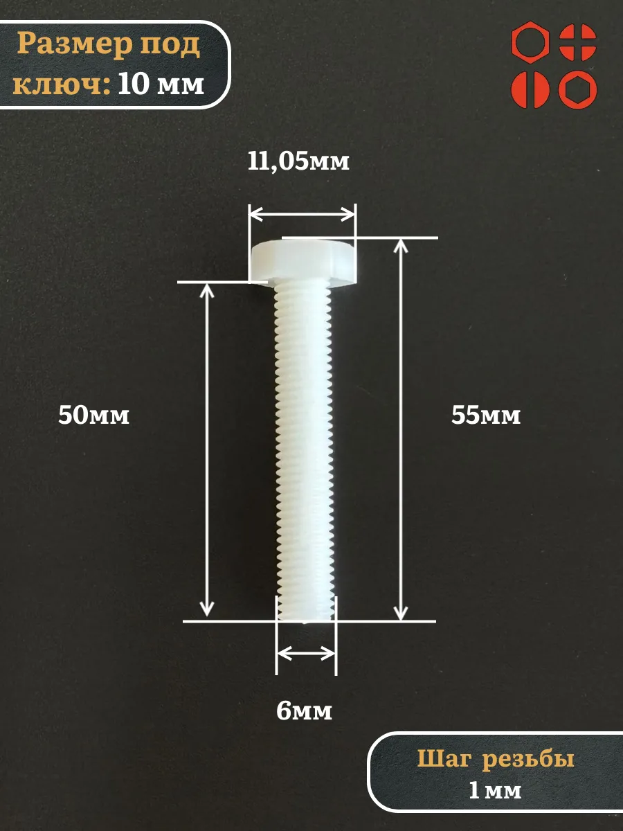 Болт с шестигранной головкой из полиамида (пластика) DIN 933, полная резьба, обладает прочностью, хорошими теплоизоляционными характеристиками и отличными антикоррозийными свойствами. Резьба на данных изделиях - метрическая, наносят ее методом горячей накатки.