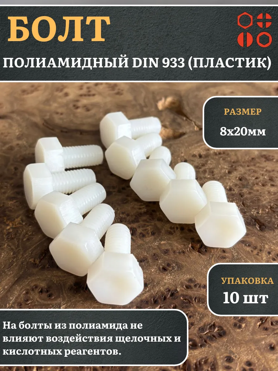 Болт полиамидный 8х20 мм DIN 933 (пластик), 50 шт. бп820933ф50 1 шт.