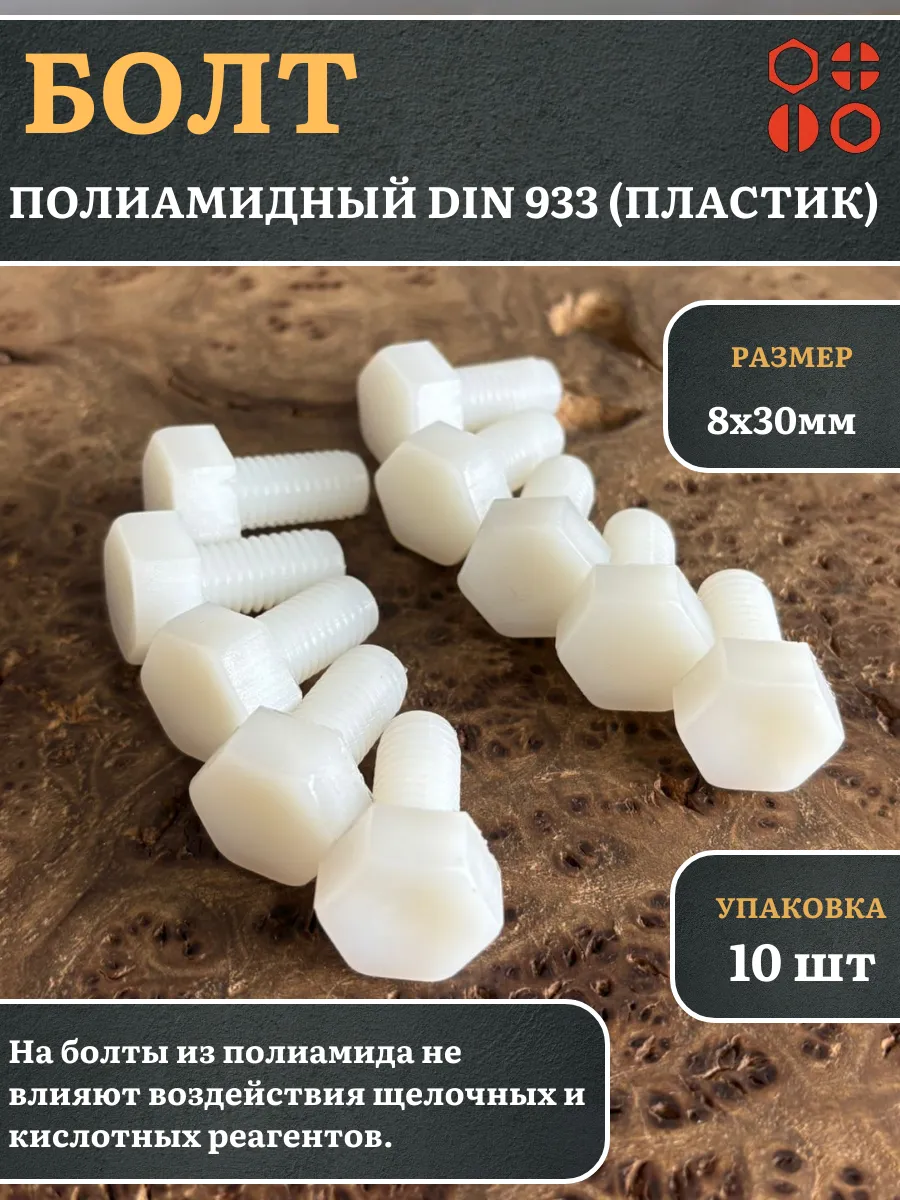 Болт полиамидный 8х30 мм DIN 933 (пластик), 10 шт.