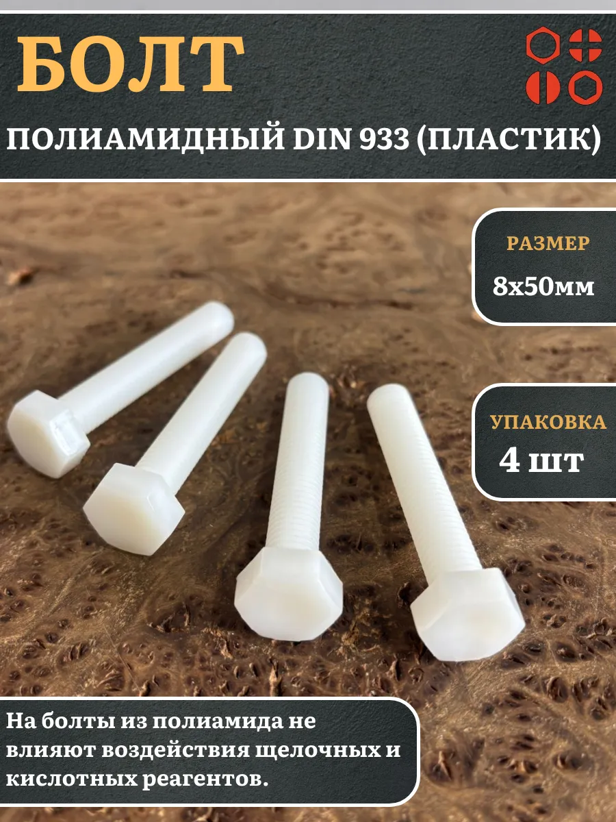 Болт полиамидный 8х50 мм DIN 933 (пластик), 50 шт. бп850933ф50 1 шт.