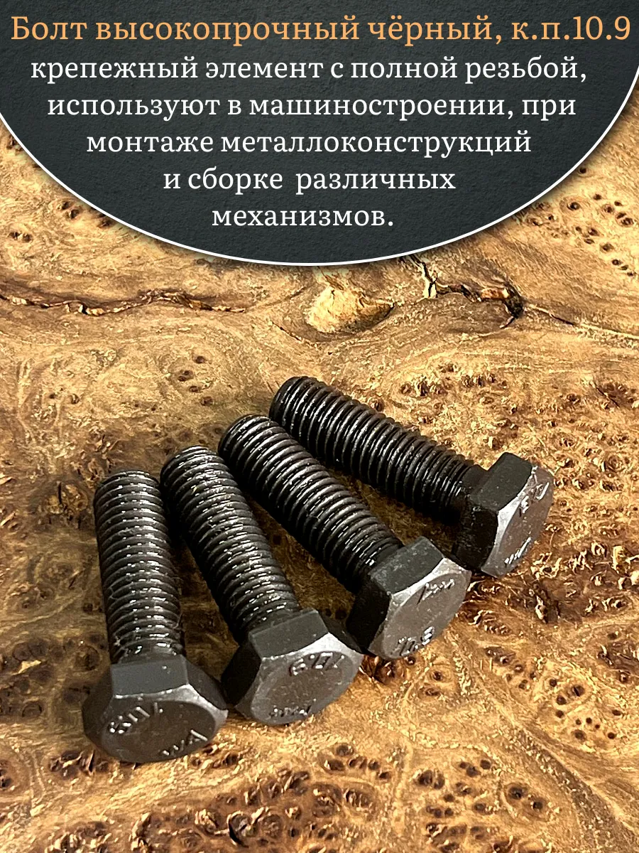 Болт высокопрочный чёрный 12х40 мм, к.п.10.9 DIN933,4 шт.