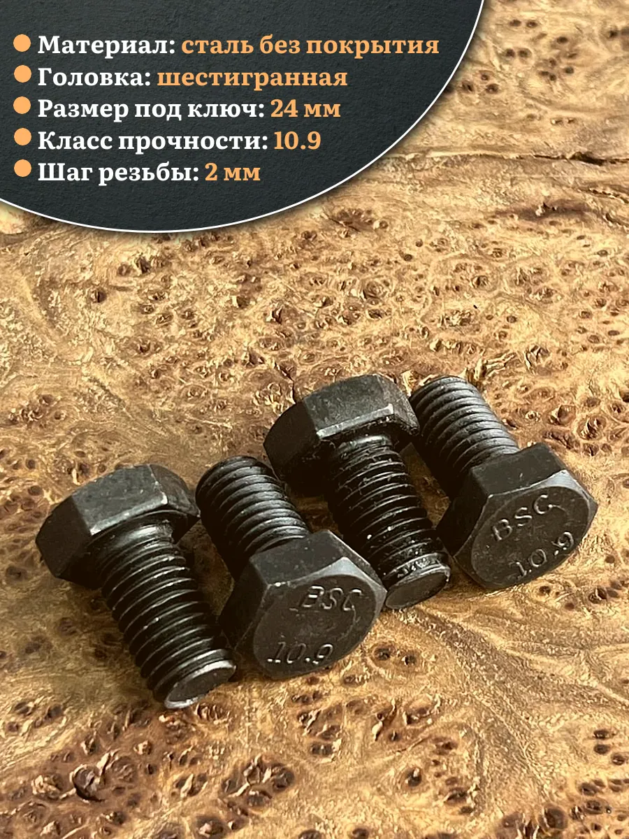Болт высокопрочный чёрный 16х30 мм, к.п.10.9 DIN933, 4 шт.