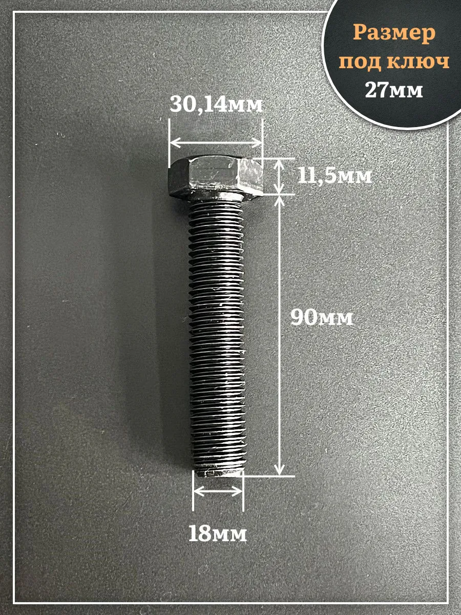 Болт высокопрочный чёрный 18х90 мм, к.п.10.9 DIN933, 2 шт.
