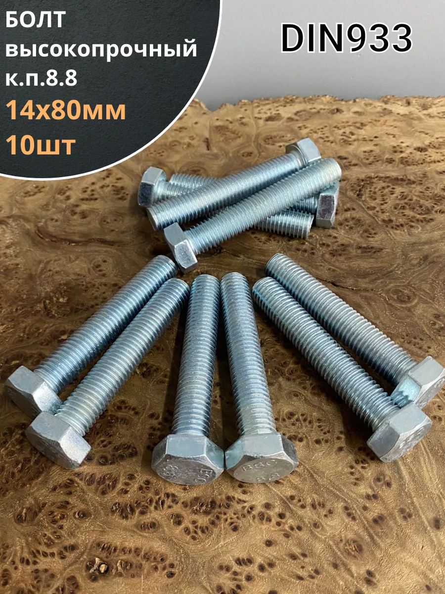 Болт высокопрочный М14х80 ОЦ к.п.8.8 DIN933 (10 шт.)