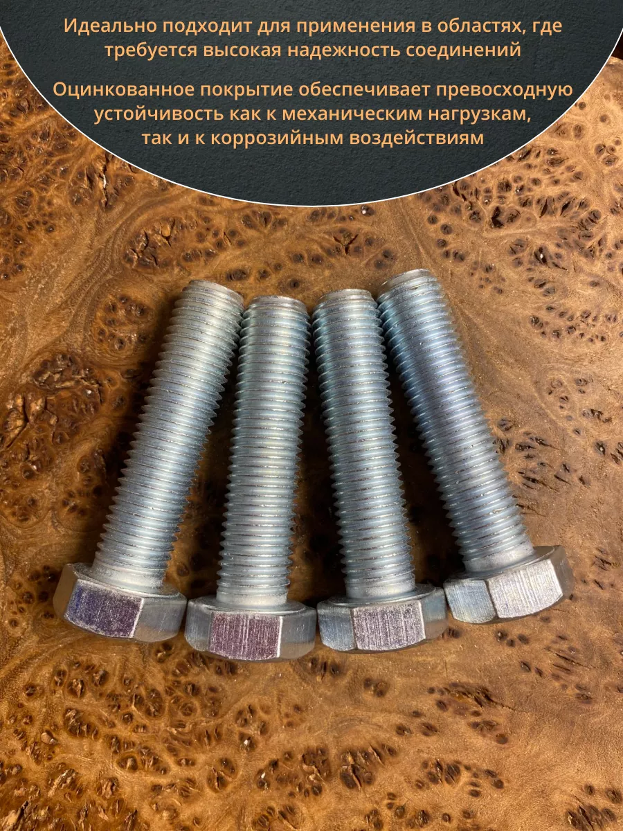 Болт, характеризующийся прочностью класса 8.8 – относится к категории высокопрочного крепежа. Данная продукция используется во многих сферах промышленного производства, для скрепления компонентов крановых конструкций, строительства мостовых пролетов, создания ж/д путей. На стержень болта может наноситься резьба одного из двух типов – полная (по всей длине стержня), либо неполная (на его части.). Шестигранная головка бывает различных размеров. Для производства применяется углеродистая сталь, в которую добавляются бор, марганец или хром либо подвергаются обработке цинком. Материал: Оцинкованная сталь 8.8