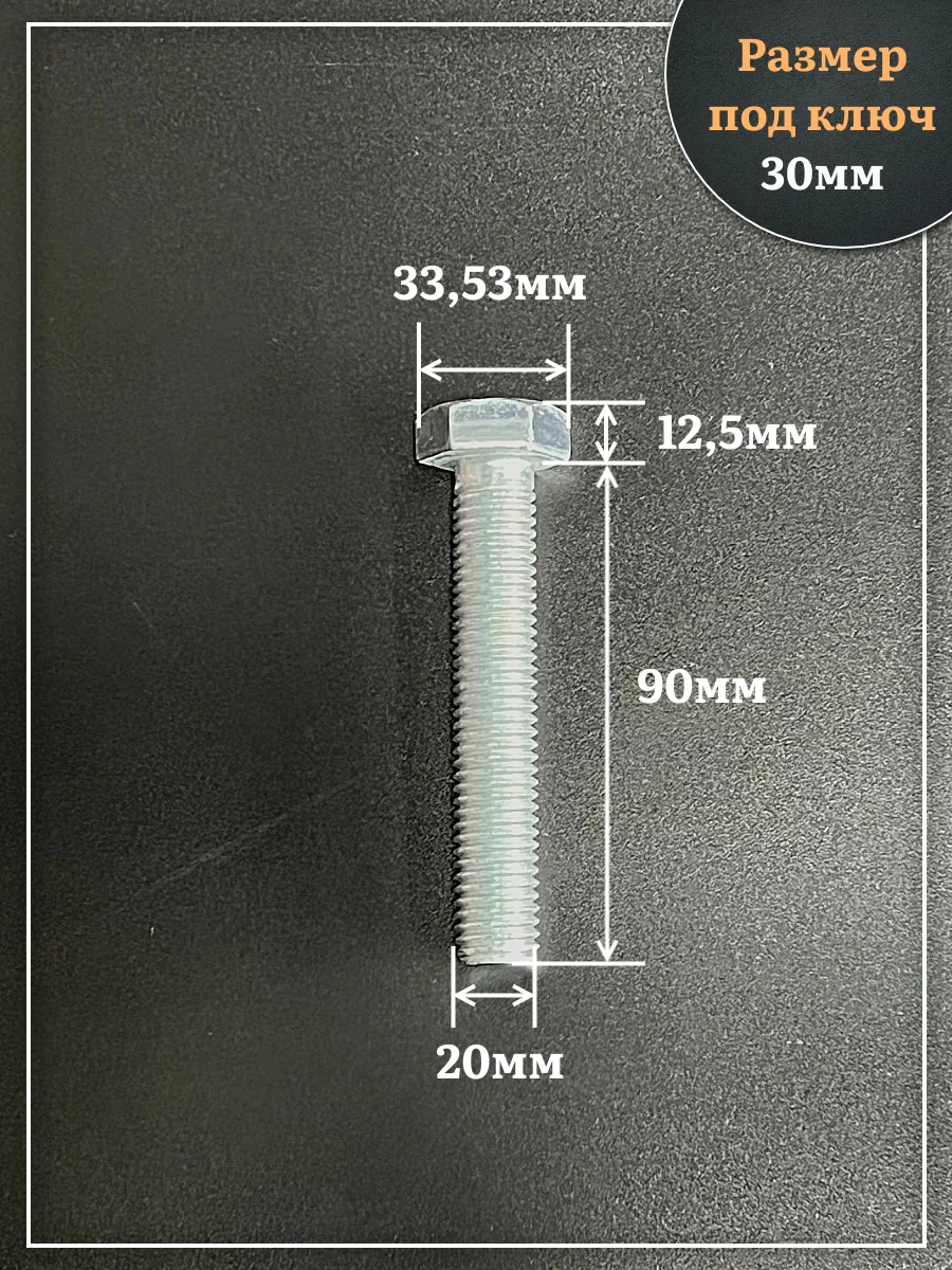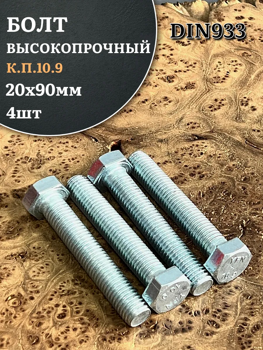 Болт высокопрочный ОЦ 20х90 мм, к.п.10.9 DIN933, 4 шт.
