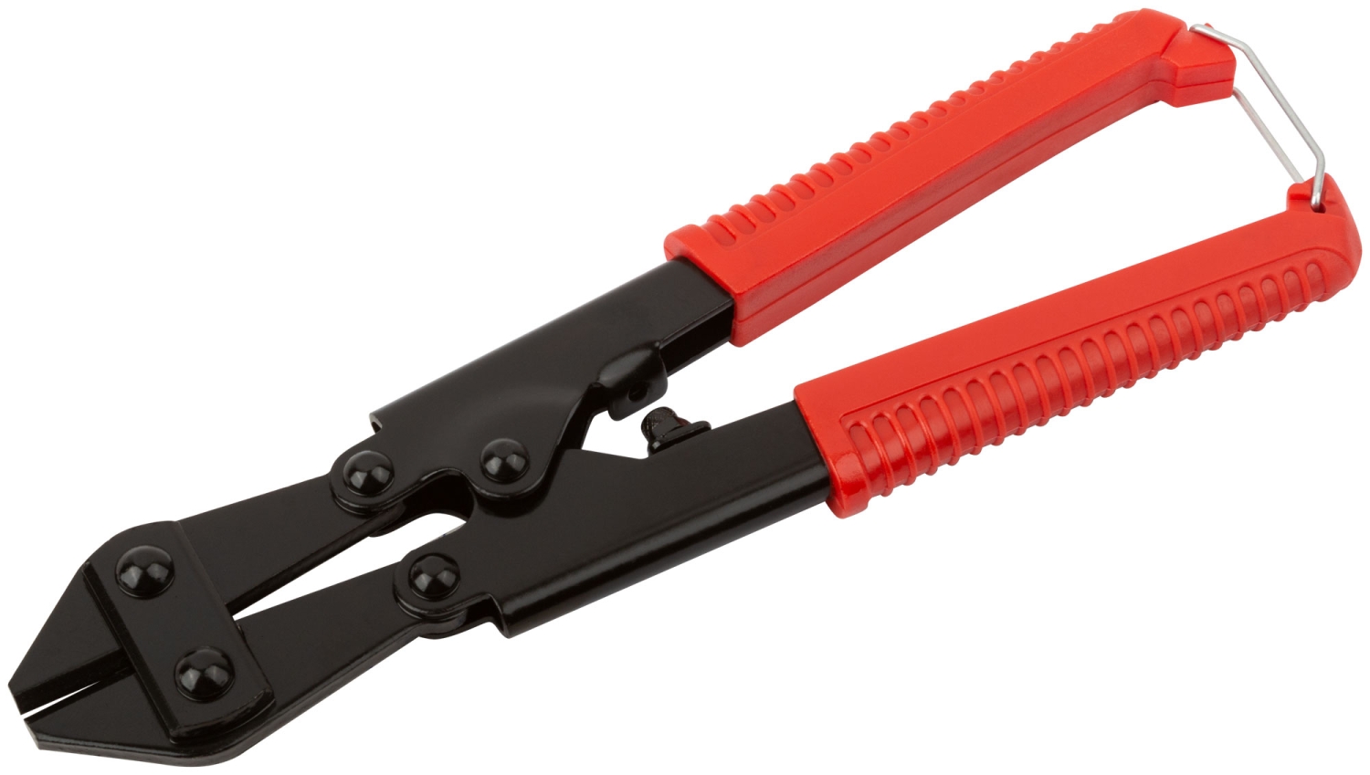 Мини-болторез FIT — компактные высокопрочные ножницы для перекусывания болтов, арматуры, проволоки и цепей диаметром до 5 мм. Режущие кромки из усиленной инструментальной стали с точной заточкой обеспечивают долговечность и чистый срез без деформации материала.