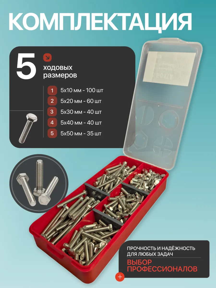 Болты нержавеющие М5 DIN933 в органайзере НАБОР 2