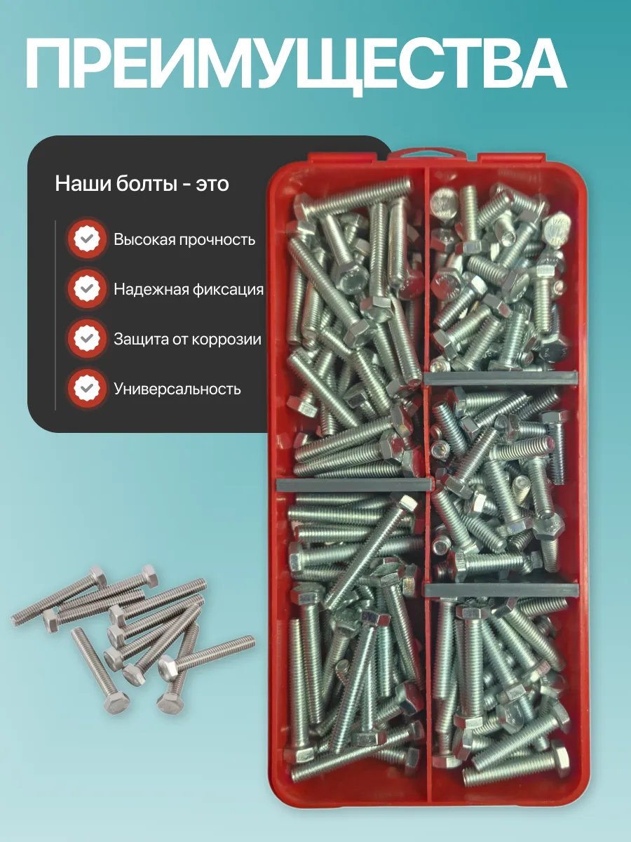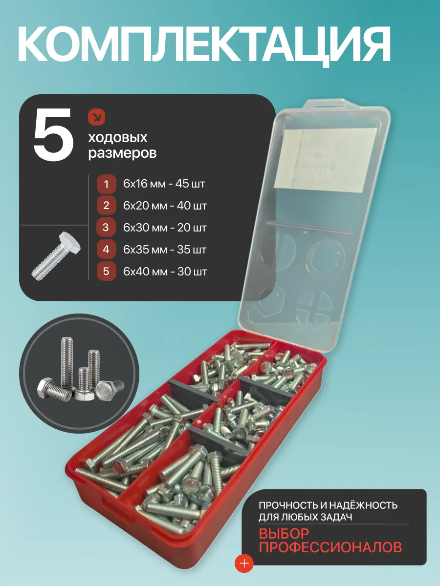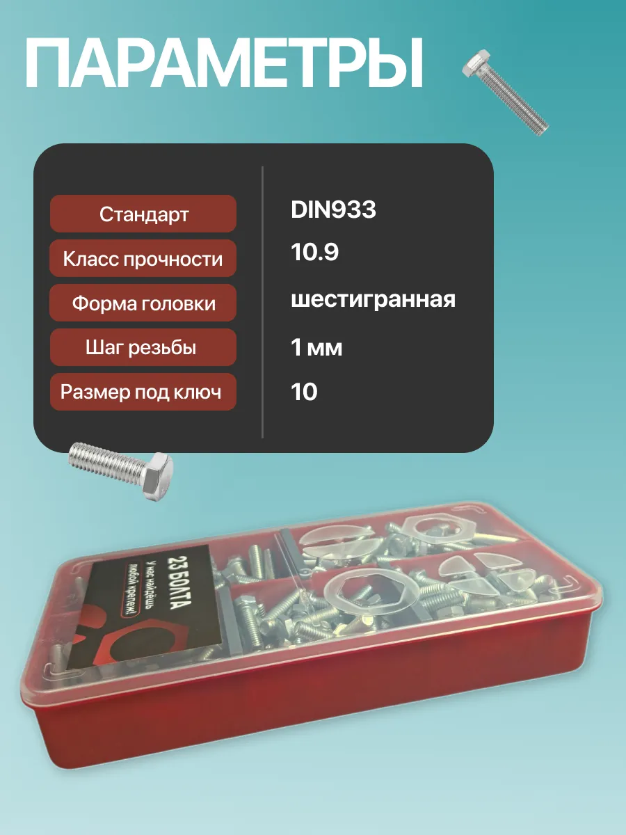 Болты высокопрочные М6 ОЦ к.п.10.9 DIN933 органайзер НАБОР 1