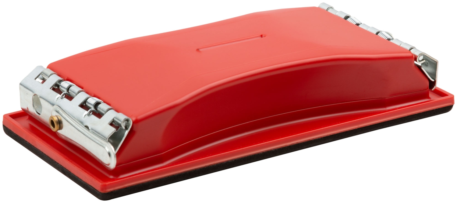 Держатель д/нажд.бум. пластиковый с мет.прижимом, красный 210х105 мм. Для обработки плоских поверхностей. Материал: ABS противоударный пластик, с металлическим прижимом.