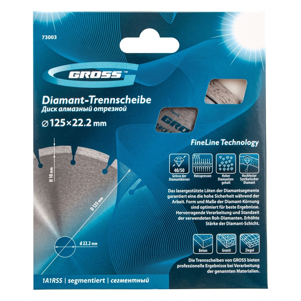 | Диск алмазный лазерная приварка сегментов сухое резание 115х22,2 мм Gross | 73002 | 1 шт. |