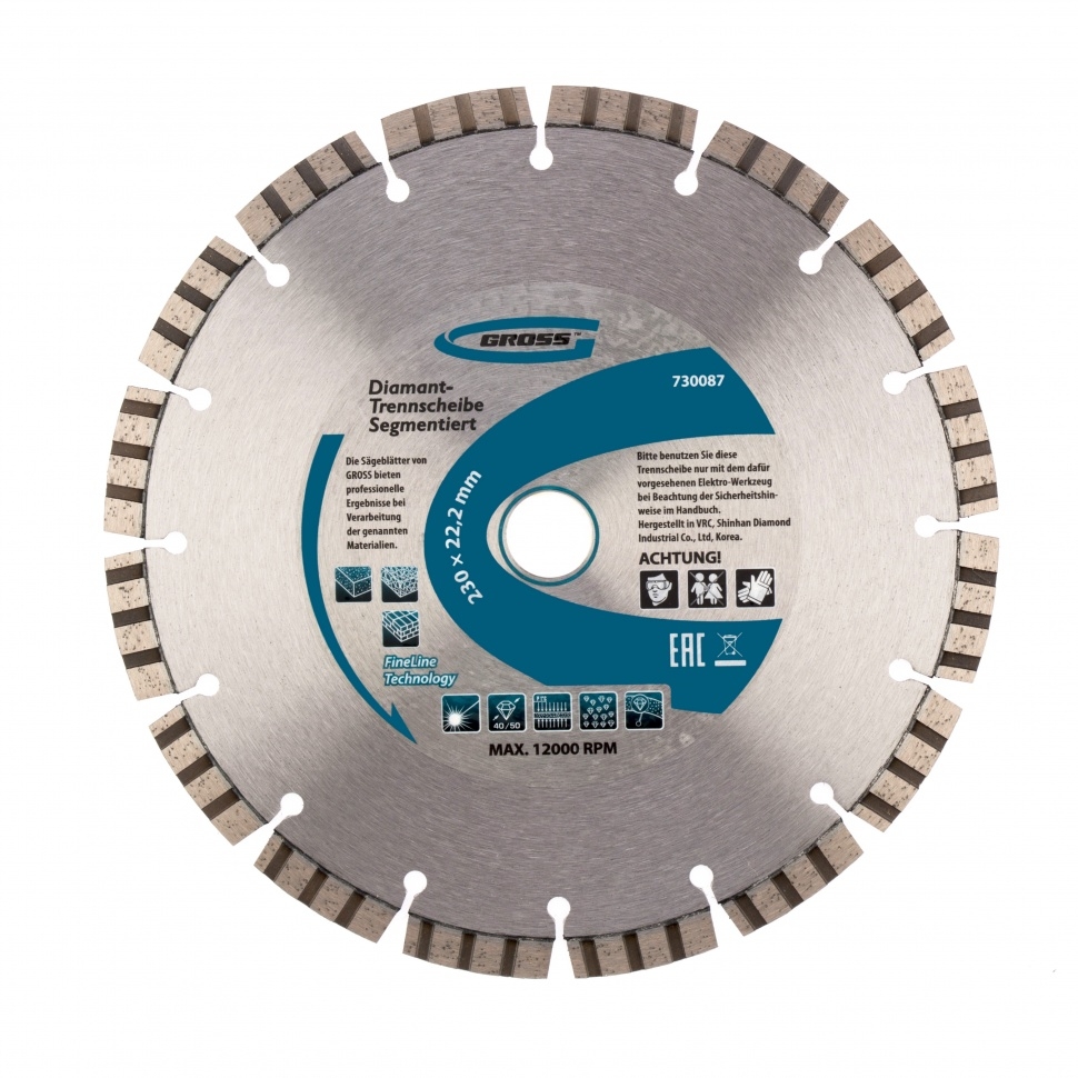 Диск алмазный лазерная приварка турбо-сегментов сухое резание 230х22,2 мм Gross