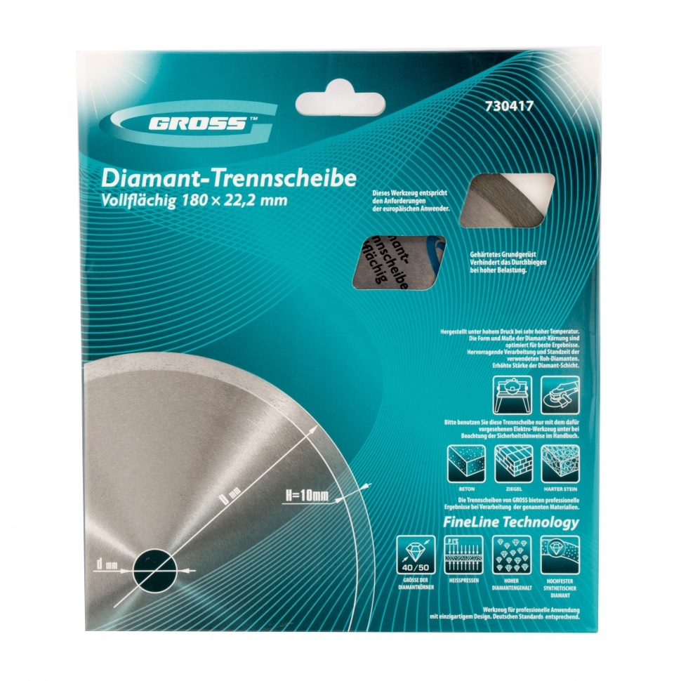 Диск алмазный сплошной мокрое резание 180х22,2 мм Gross