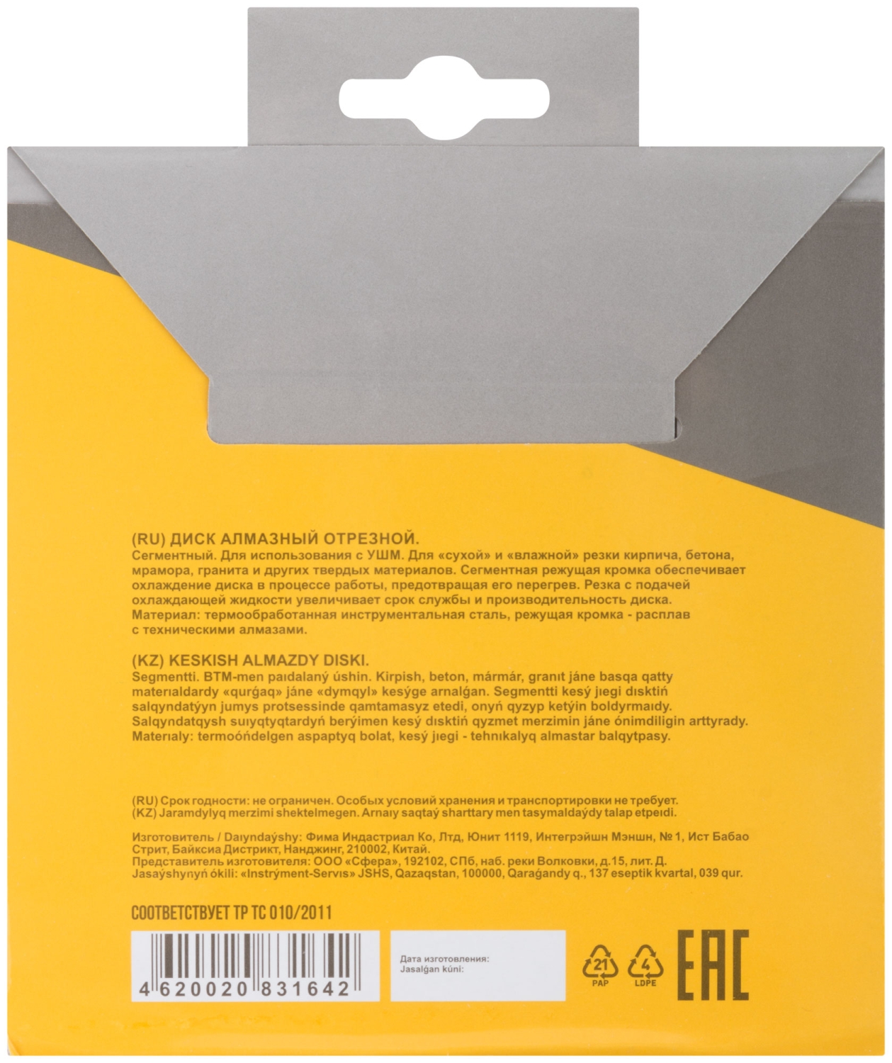 | Диск отрезной алмазный сегментный (сухая и влажная резка) 115х1,9х7,0х22,2 мм | 37211М | 1 шт. |