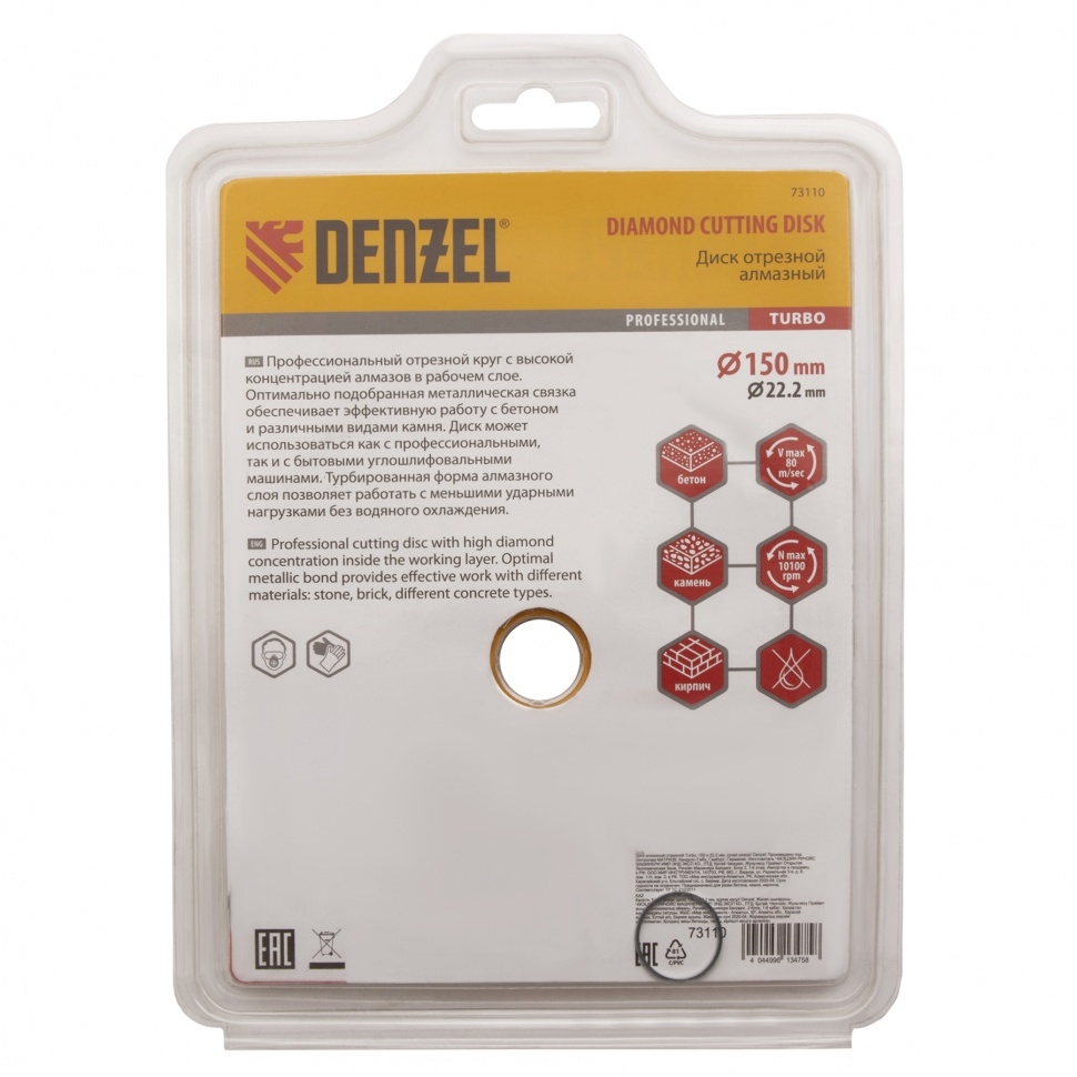 Диск отрезной алмазный сегментный турбо сухое резание 150х22,2 мм Denzel
