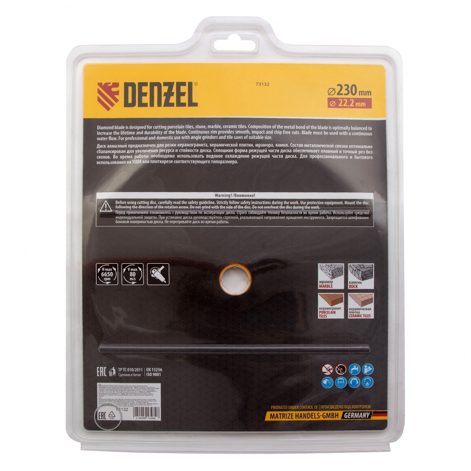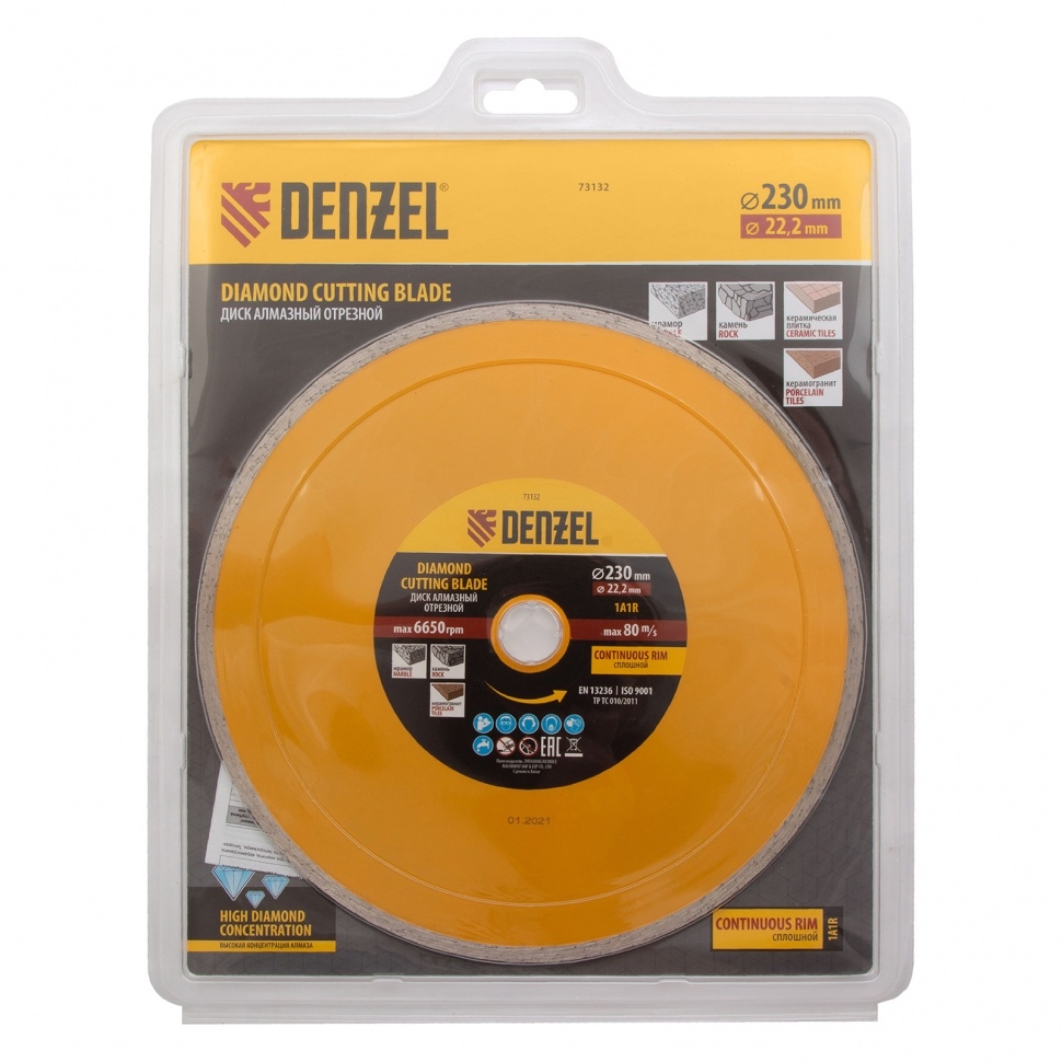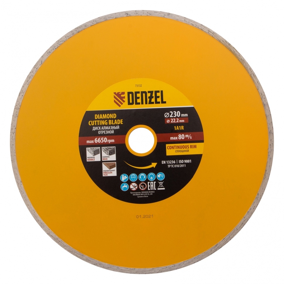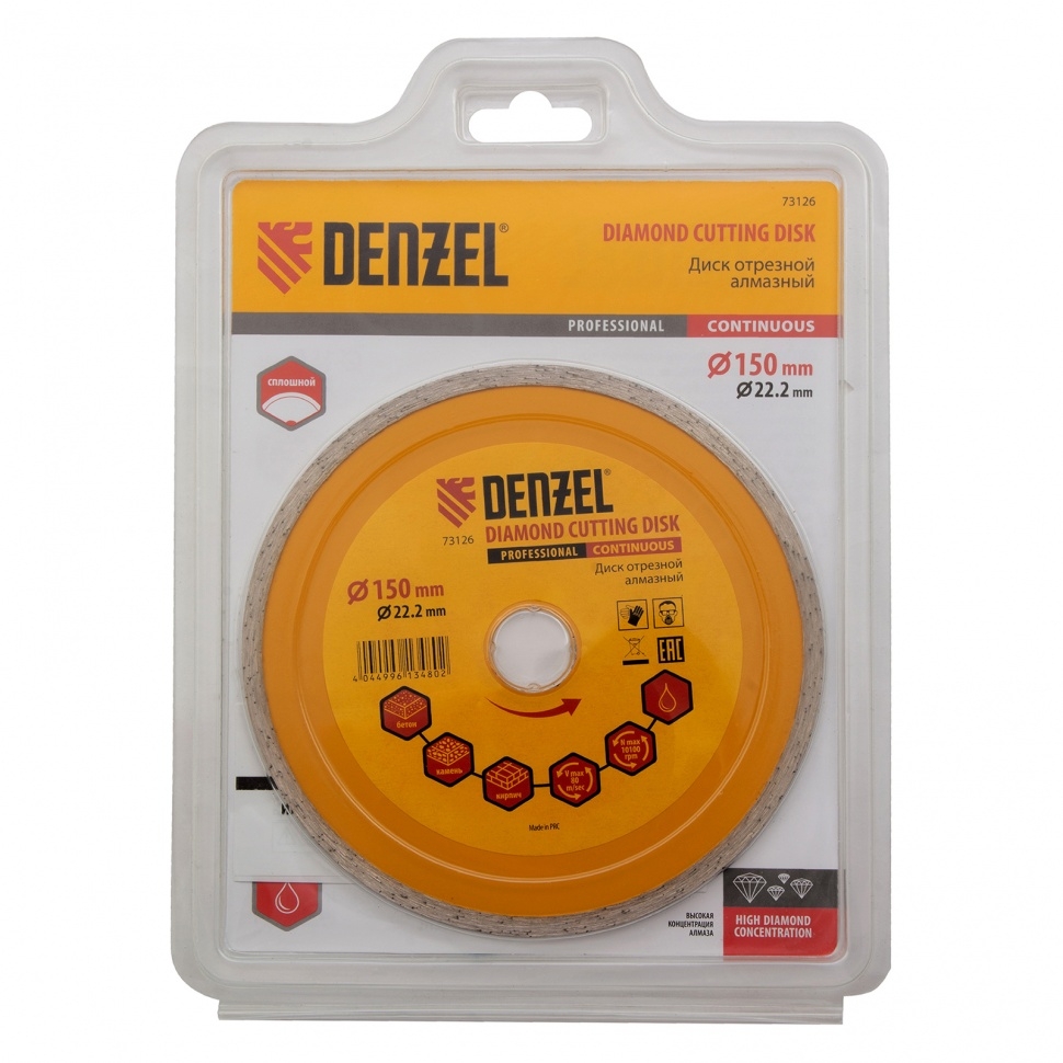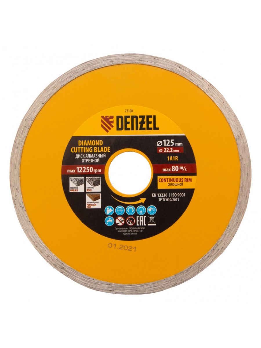 Диск отрезной алмазный сплошной мокрое резание Denzel