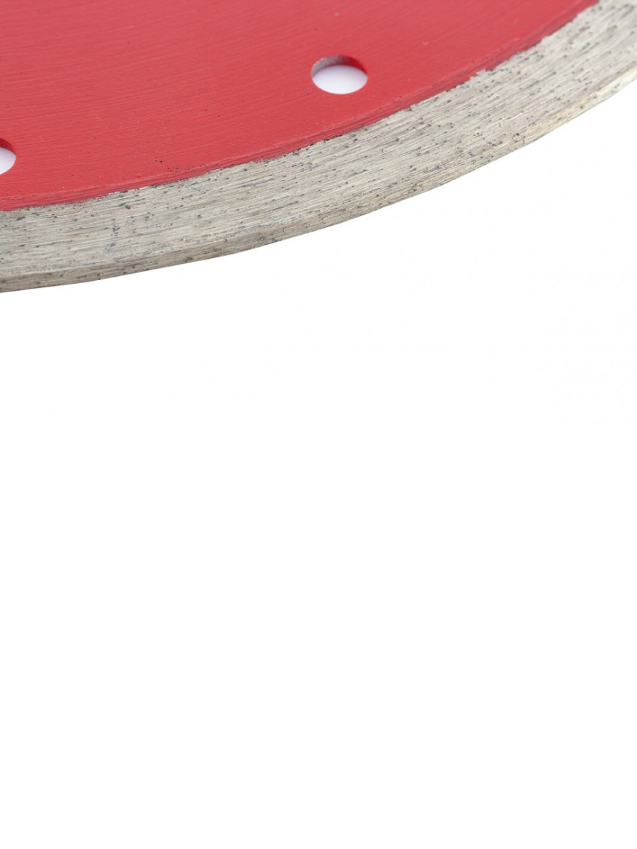 Сплошная форма и перфорированный корпус позволяют добиться высокого качества реза и предотвращают появление сколов. Режущая часть шириной 10 мм с высокой концентрацией алмазов способствуют увеличению рабочего ресурса диска на 50%. Высокий ресурс и износостойкость рабочей части достигается за счет металлической связки. Метод ускоренного горячего прессования улучшает сопротивление режущей части нагрузкам и делает мокрое резание более качественным.
