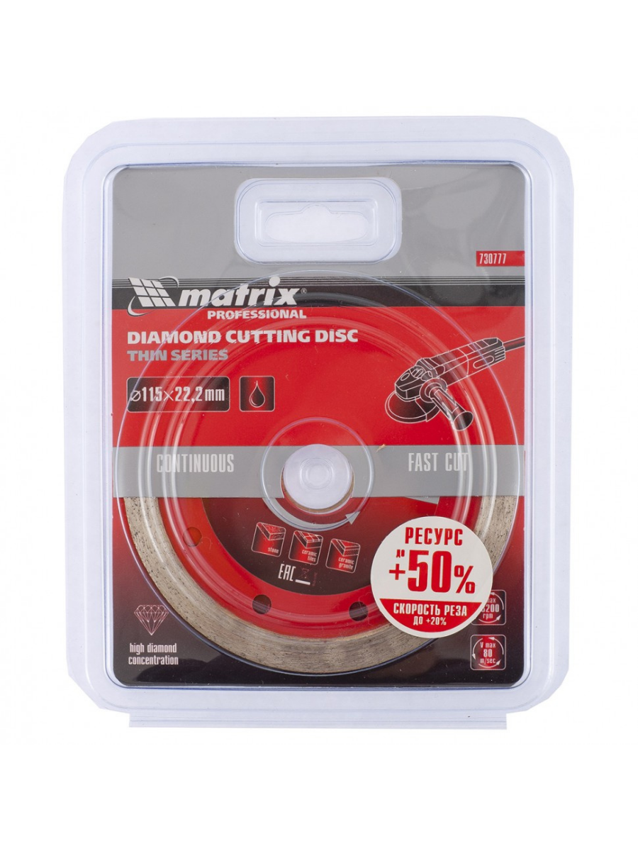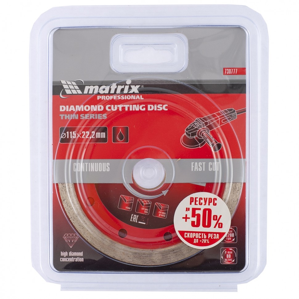 Диск отрезной алмазный сплошной тонкий сухое резание 115х22,2 мм Matrix