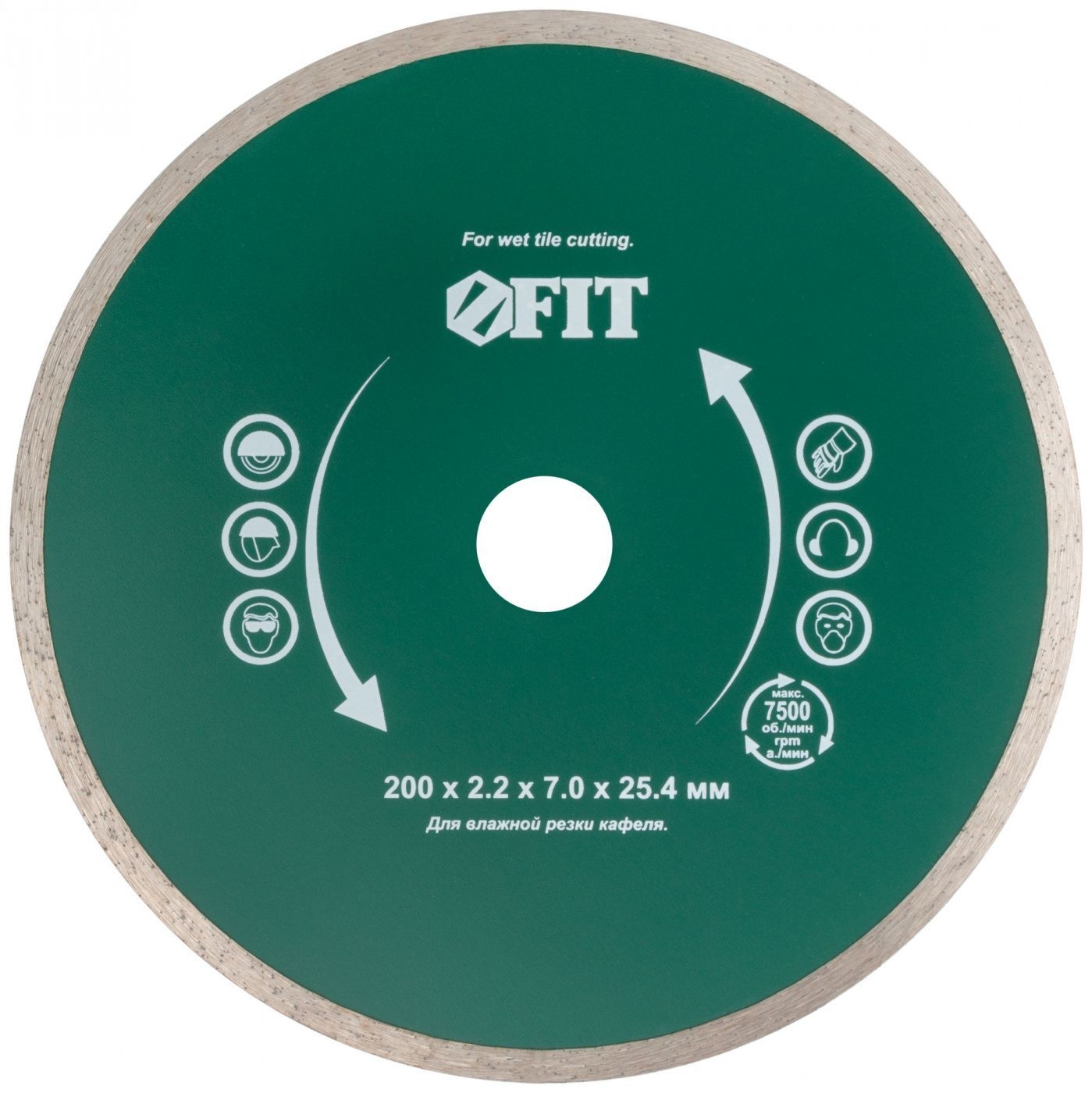 Сплошной, для влажной резки. Предназначен для разрезания кафеля. Для электроплиткорезов. Высота алмазной режущей кромки 7 мм. Посадочный диаметр 25,4 мм. Материал: высококачественная инструментальная сталь,<br/>режущая кромка содержит порошок из технических алмазов. Упаковка: картонный конверт.