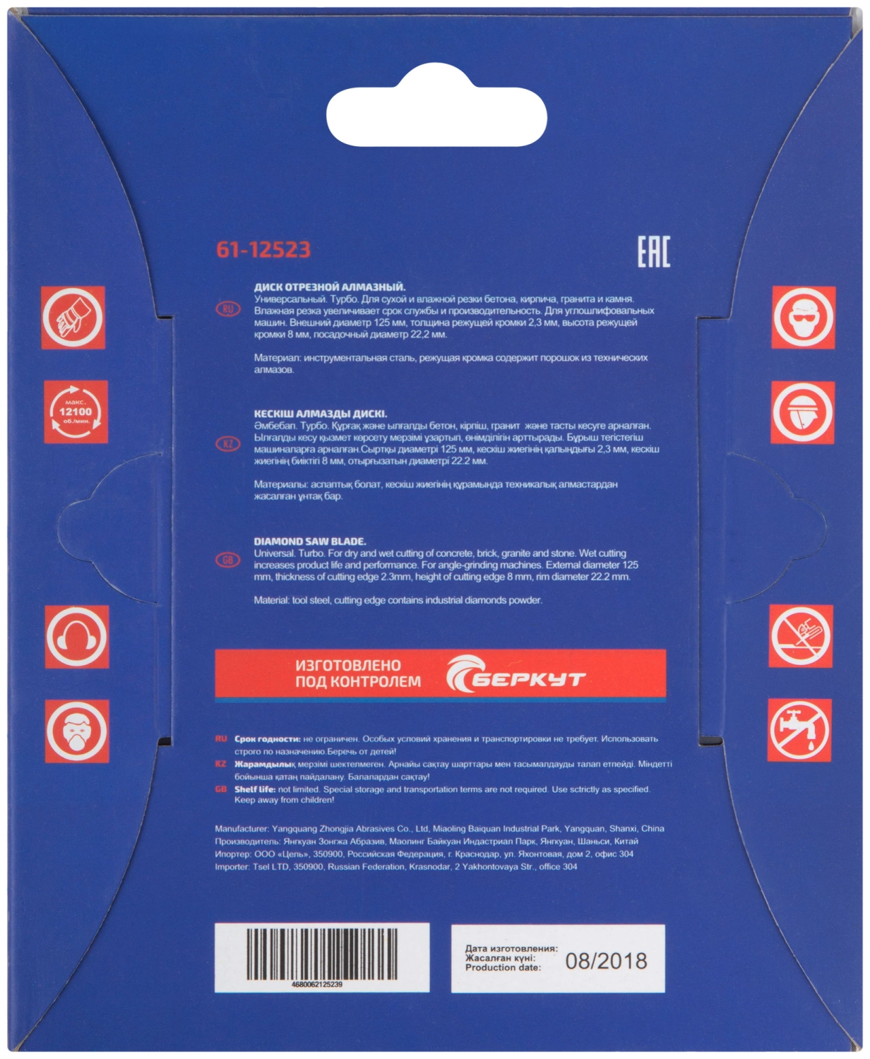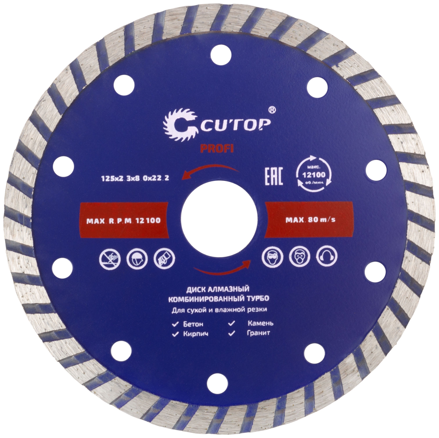 | Диск отрезной алмазный турбо CUTOP 125х2,3х8,0х22,2 мм | 61-12523 | 1 шт. |