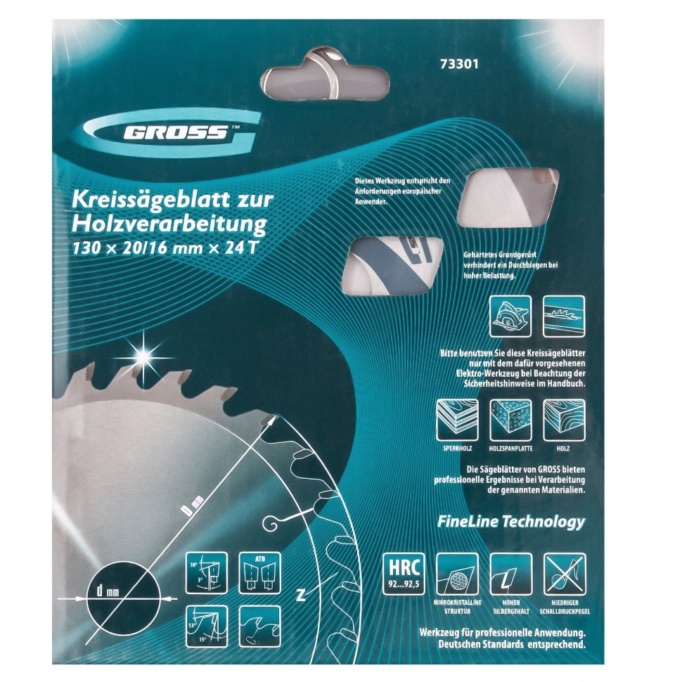 Диск пильный по дереву 130х20 мм 24 зуба + кольцо 20/16 мм Gross