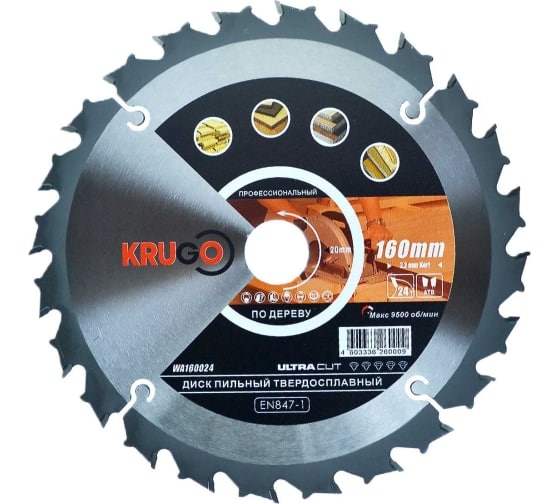 Диск пильный по дереву 160х2,2/1,4х24Тх20 мм KRUGO
