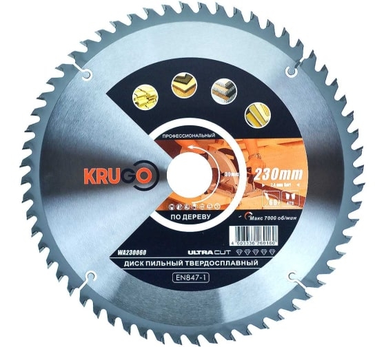 Диск пильный по дереву 230х2,4/1,6х60Тх30 мм KRUGO