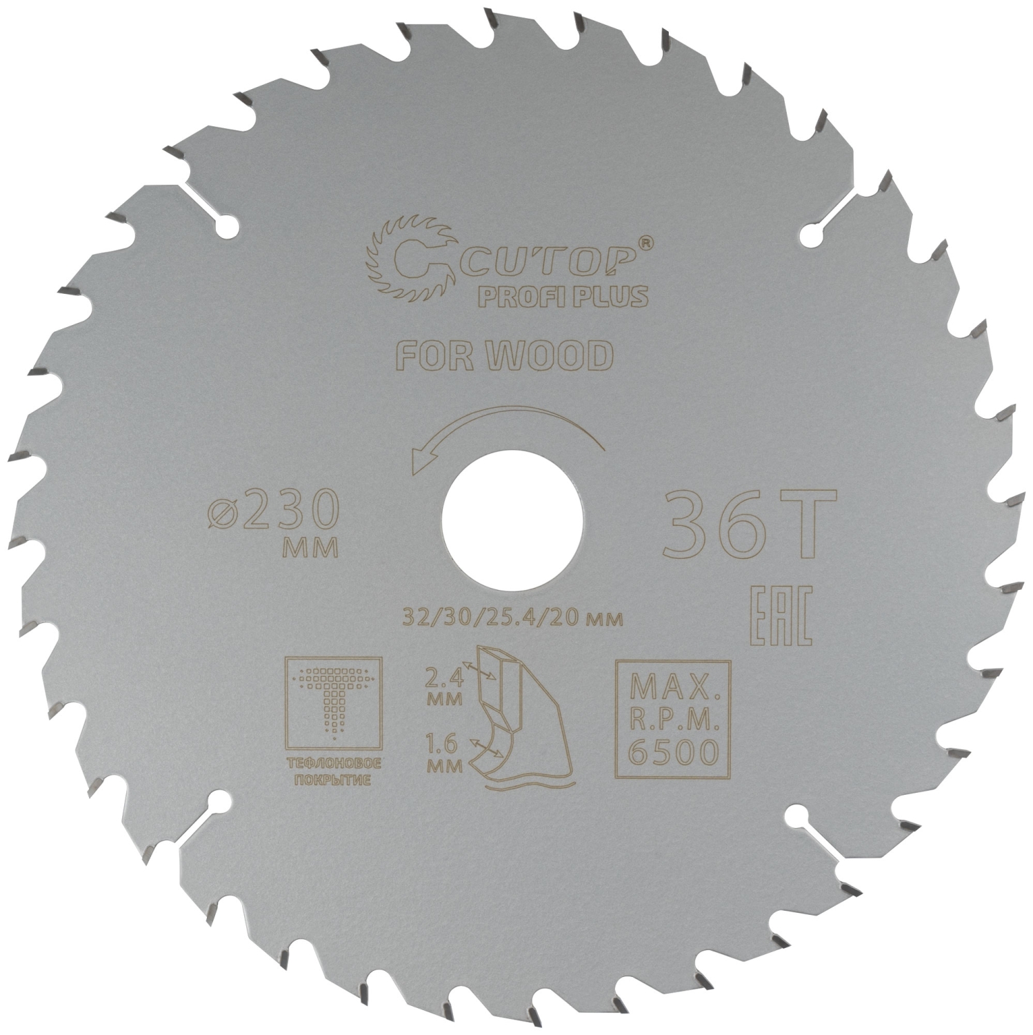 Диск пильный по дереву с тефл.покр.36Т CUTOP Profi Plus 230х1,6/2,4х32/30/25,4/20 мм