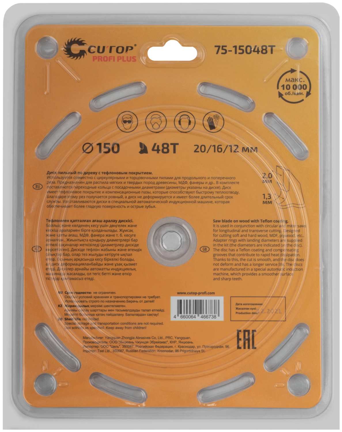 Диск пильный по дереву с тефл.покр.48Т CUTOP Profi Plus 150х1,3/2,0х20/16/12 мм