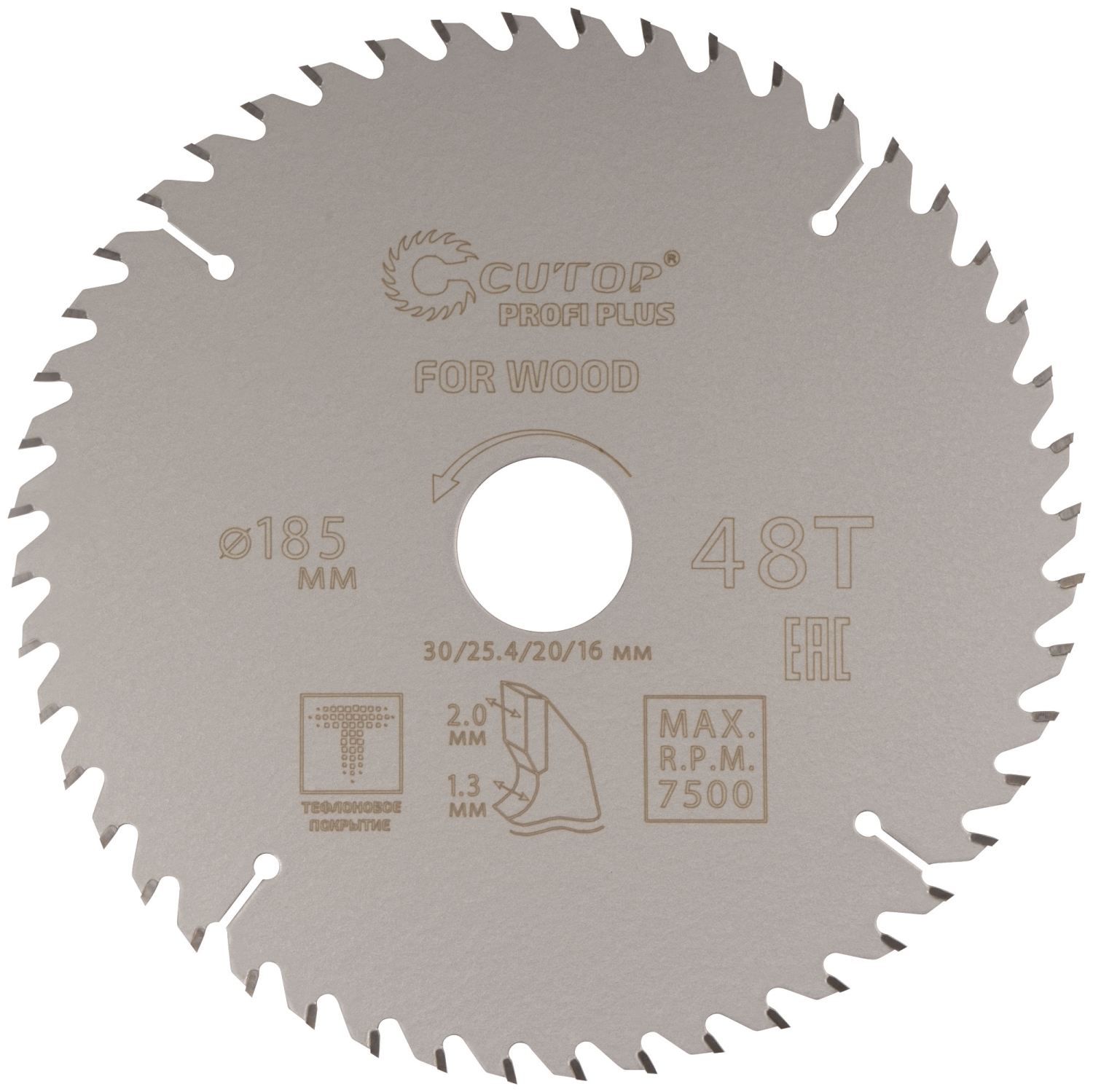 Диск пильный по дереву с тефл.покр.48Т CUTOP Profi Plus 185х1,3/2,0х30/25,4/20/16 мм