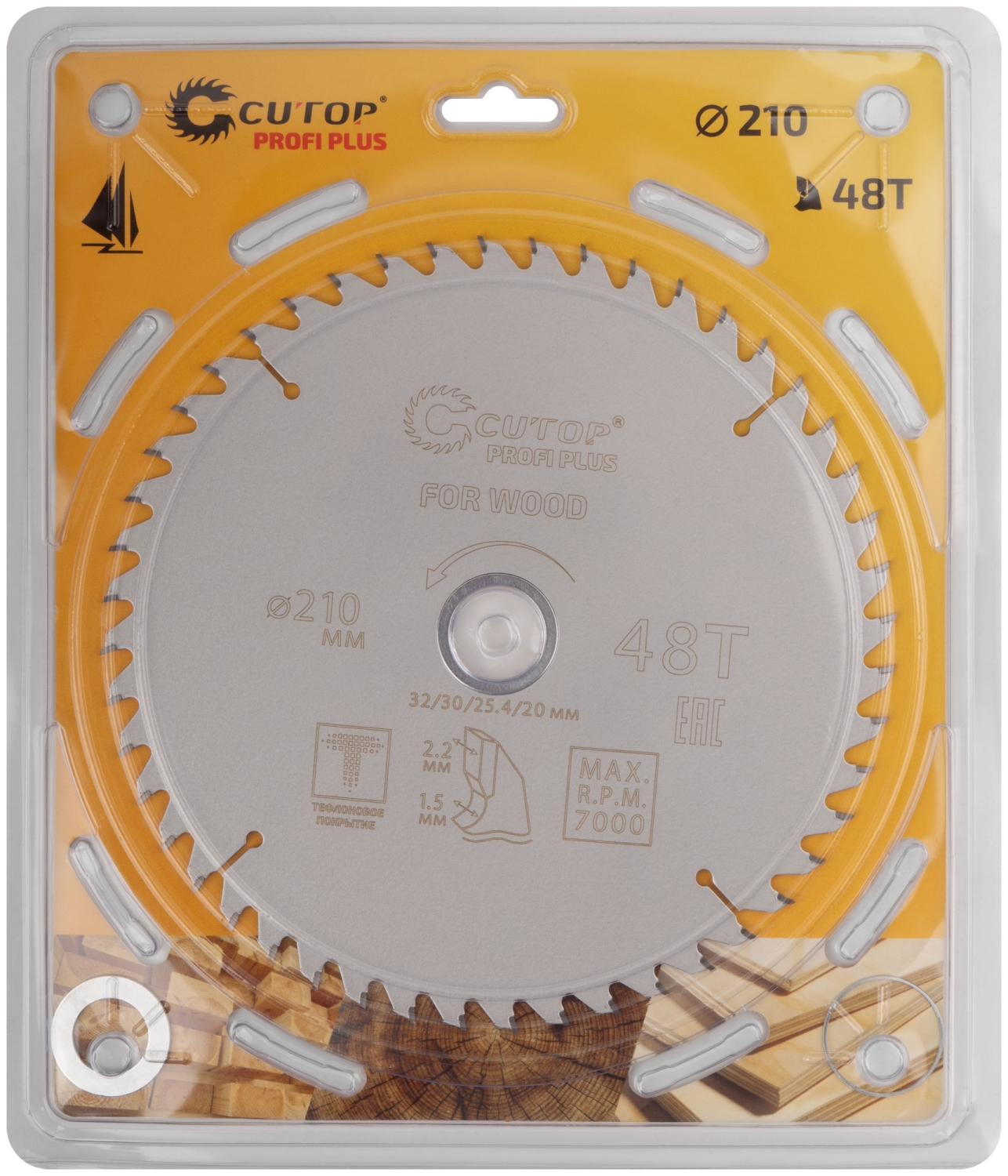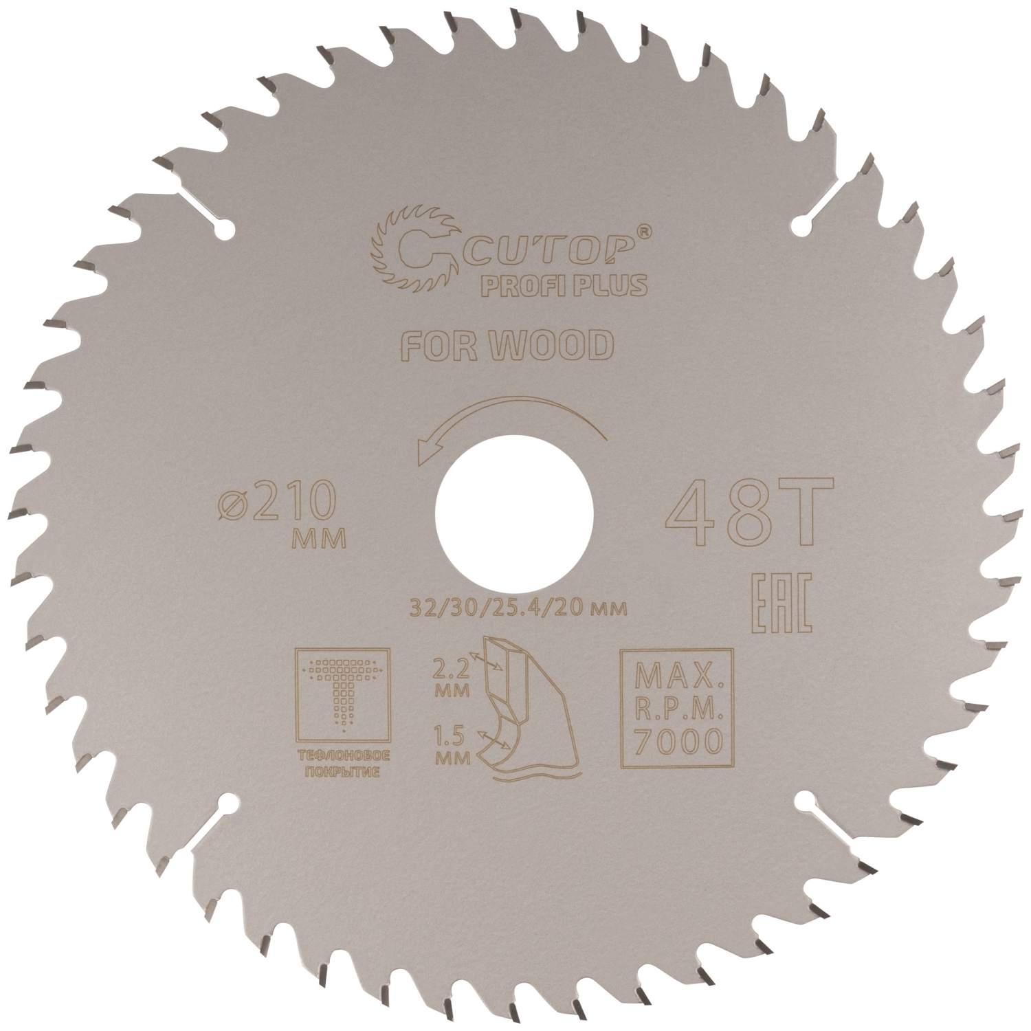 | Диск пильный по дереву с тефл.покр.48Т CUTOP Profi Plus 210х1,5/2,2х32/30/25,4/20 мм | 75-21048Т | 1 шт. |
