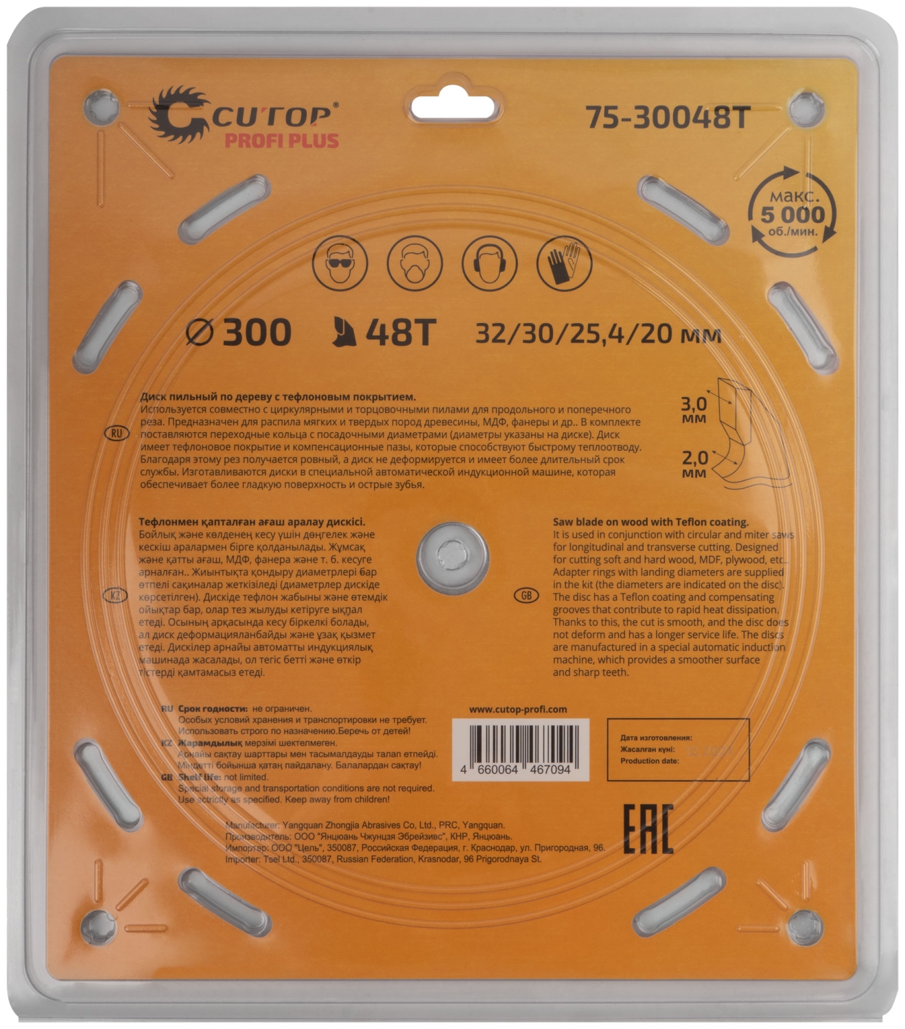 Диск пильный по дереву с тефл.покр.48Т CUTOP Profi Plus 300х2,0/3,0х32/30/25,4/20 мм