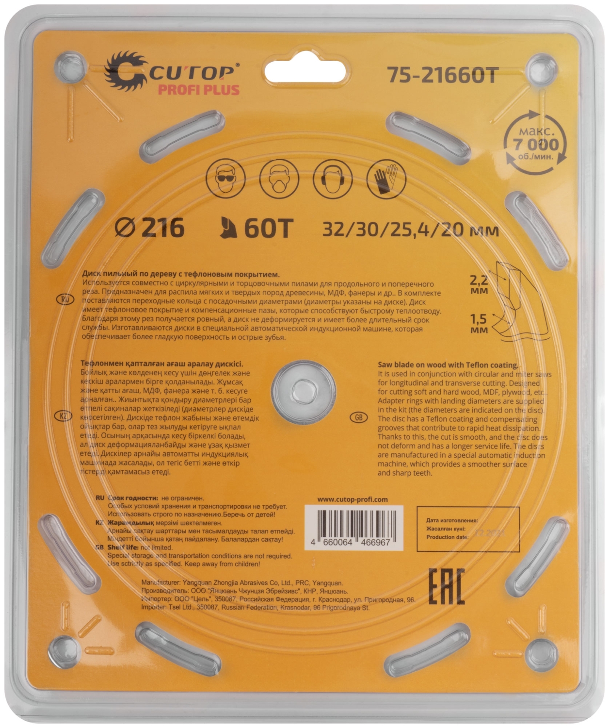 Диск пильный по дереву Cutop Profi Plus с тефлоновым покрытием. Используется совместно с циркулярными и торцовочными пилами для продольного и поперечного реза. Предназначен для распила мягких и твердых пород древесины, МДФ, фанеры и др.. В комплекте поставляются переходные кольца с посадочными диаметрами (диаметры указаны на диске).<br/>Диск имеет тефлоновое покрытие и компенсационные пазы, которы способствуют быстрому теплоотводу. Благодаря этому рез получается ровный, а диск не деформируется и имеет более длительный срок службы. Изготавливаются диски в специальной автоматической индукционной машине, которая обеспечивает более гладкую поверхность и острые зубья. Материал: инструментальная сталь, карбидные зубья. Упаковка: блистер.