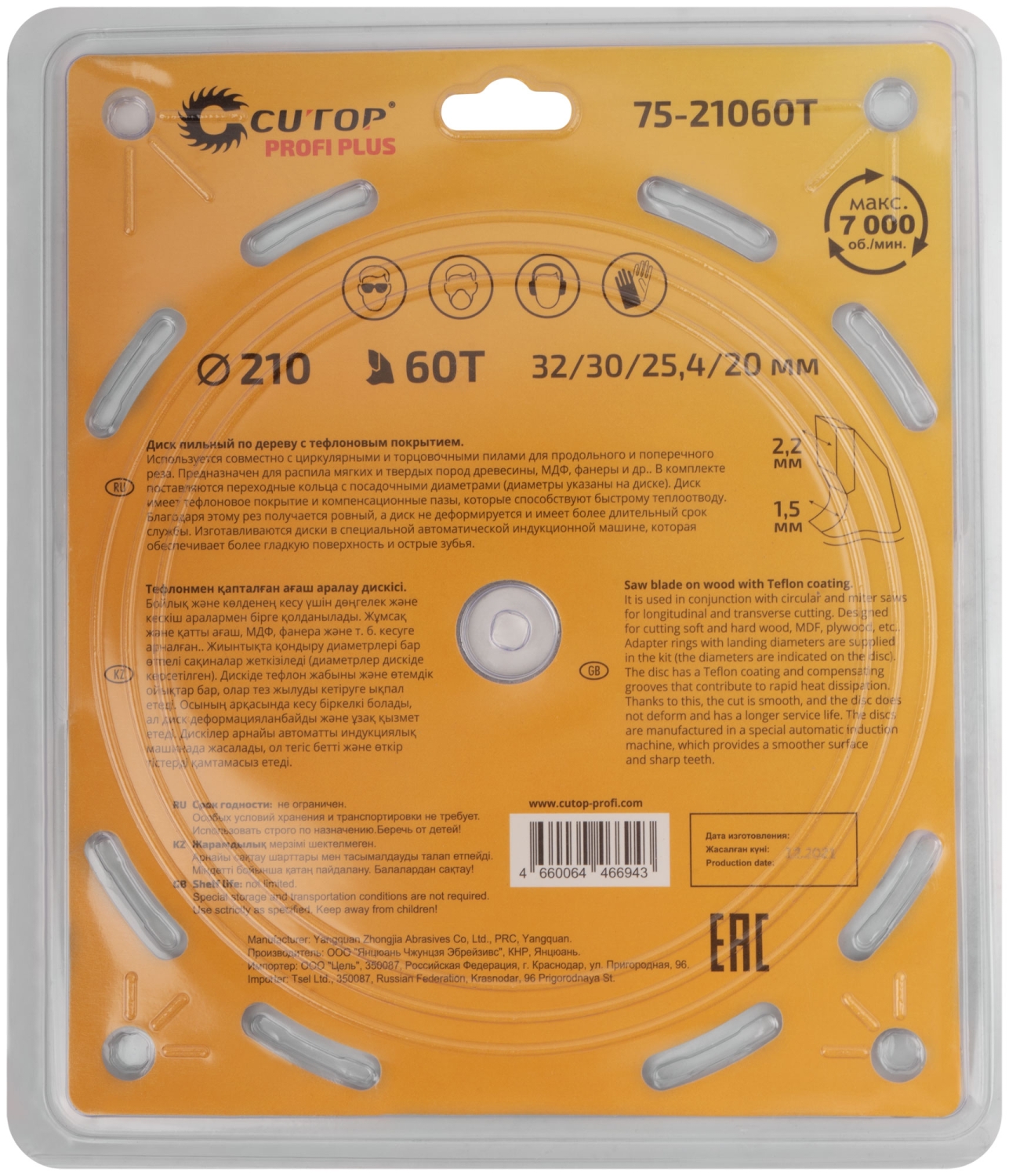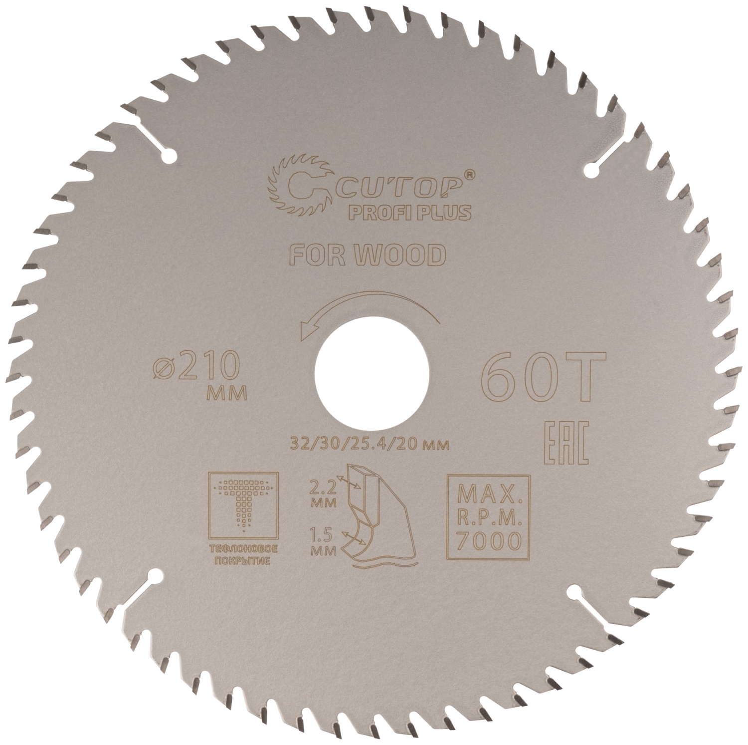 Диск пильный по дереву с тефл.покр.60Т CUTOP Profi Plus 210х1,5/2,2х32/30/25,4/20 мм