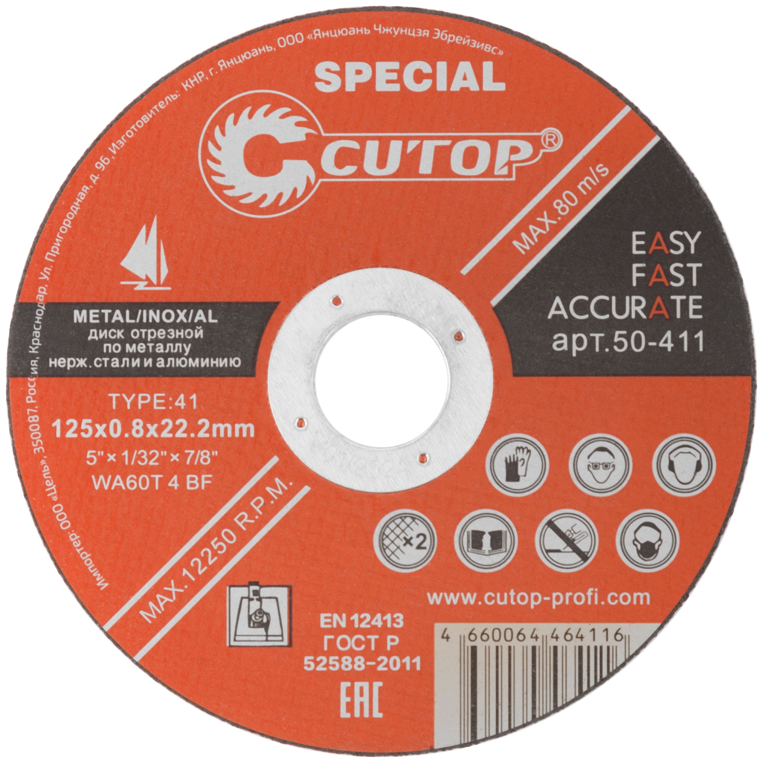 Диск Проф спец отрезной по мет., нерж.стали и алюм.Т41-125х0,8х22,2 мм Cutop Special