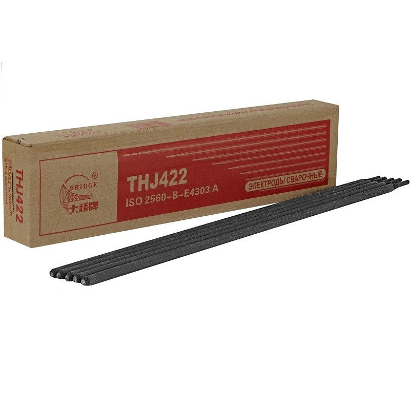 BRIDGE THJ422 - сварочный электрод с рутиловым покрытием. Подходит как для переменного тока, так и для постоянного. Предназначен для ручной дуговой сварки конструкций из низкоуглеродистых конструкционных сталей с классом прочности Q235. Сварка позиций: PA, PB, PC, PD, PE, PF.