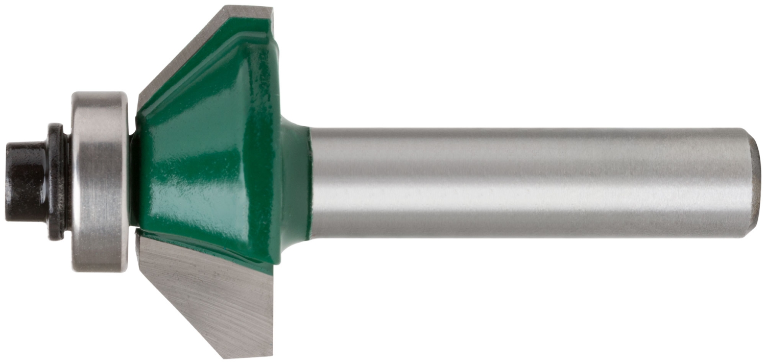 Используется для работ по дереву. С нижним подшипником. Для фрезерования кромок. Угол при вершине 45°. Цилиндрический хвостовик. Материал: инструментальная сталь, с твердосплавными режущими вставками. Упаковка: пластиковая коробка.