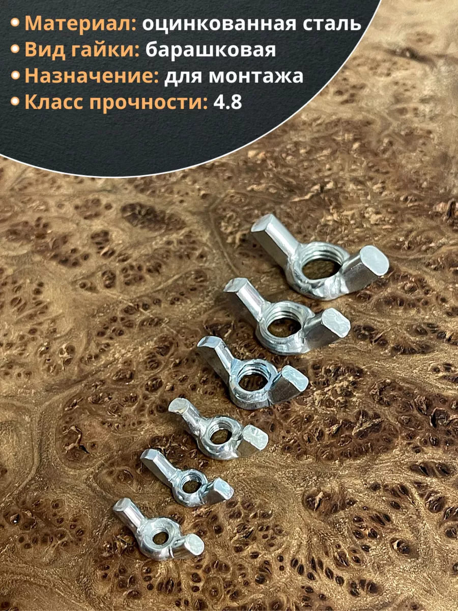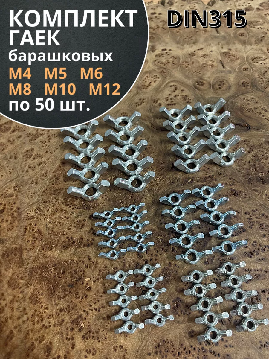 Гайка барашковая М4,5,6,8,10,12 ОЦ DIN315 (по 50 шт.)