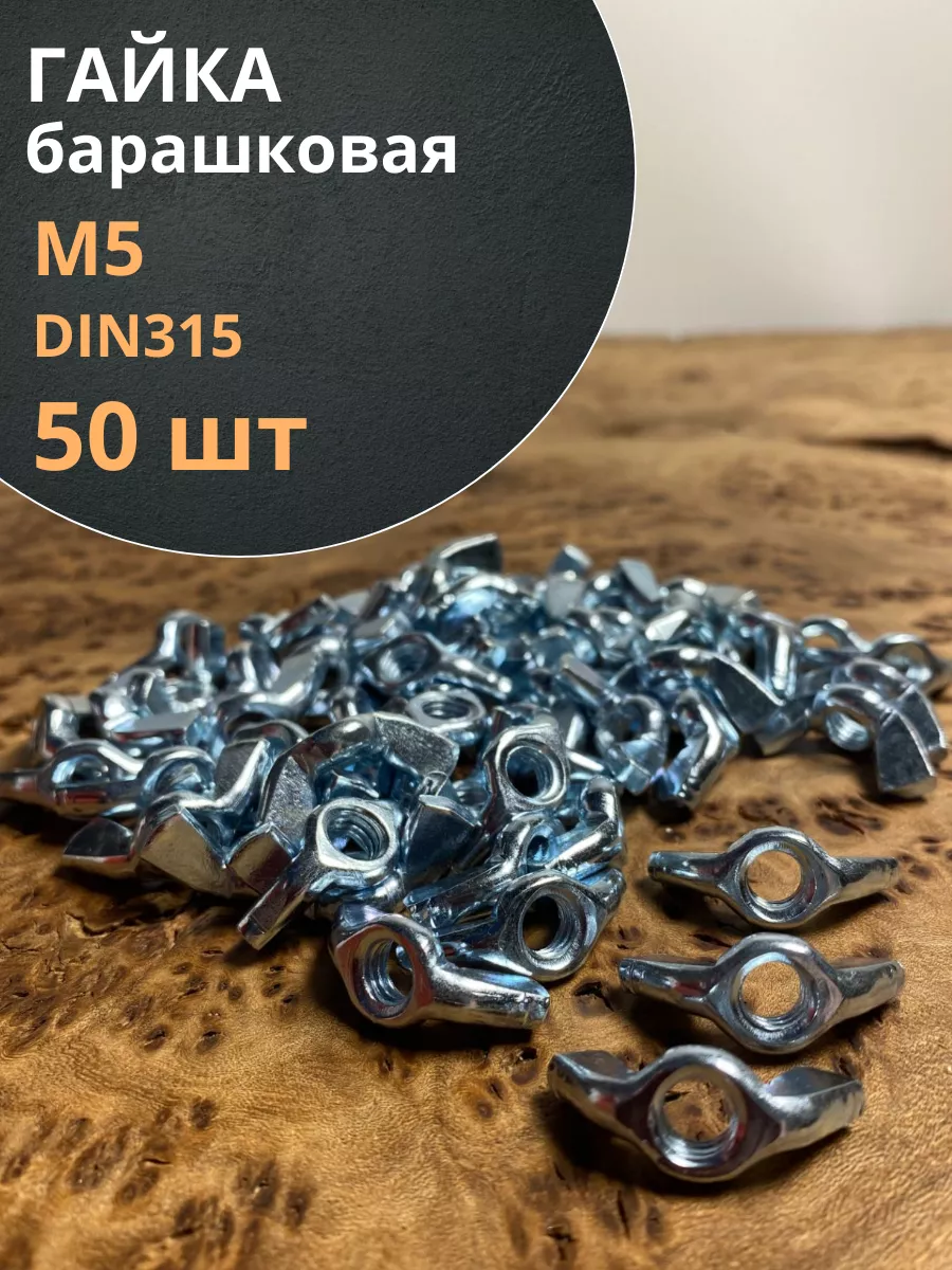 Гайка барашковая М5 ОЦ DIN315 , 50 шт.