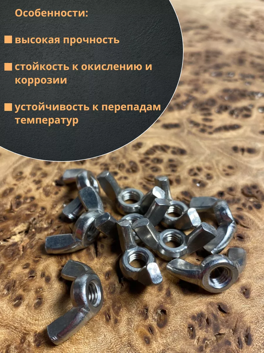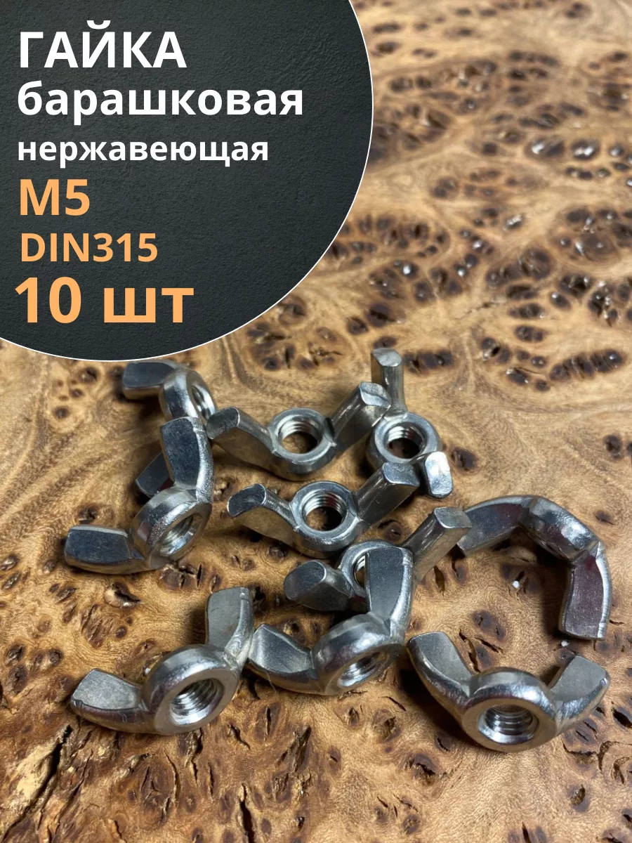 Гайка барашковая нержавеющая М5 DIN315 , 10 шт.