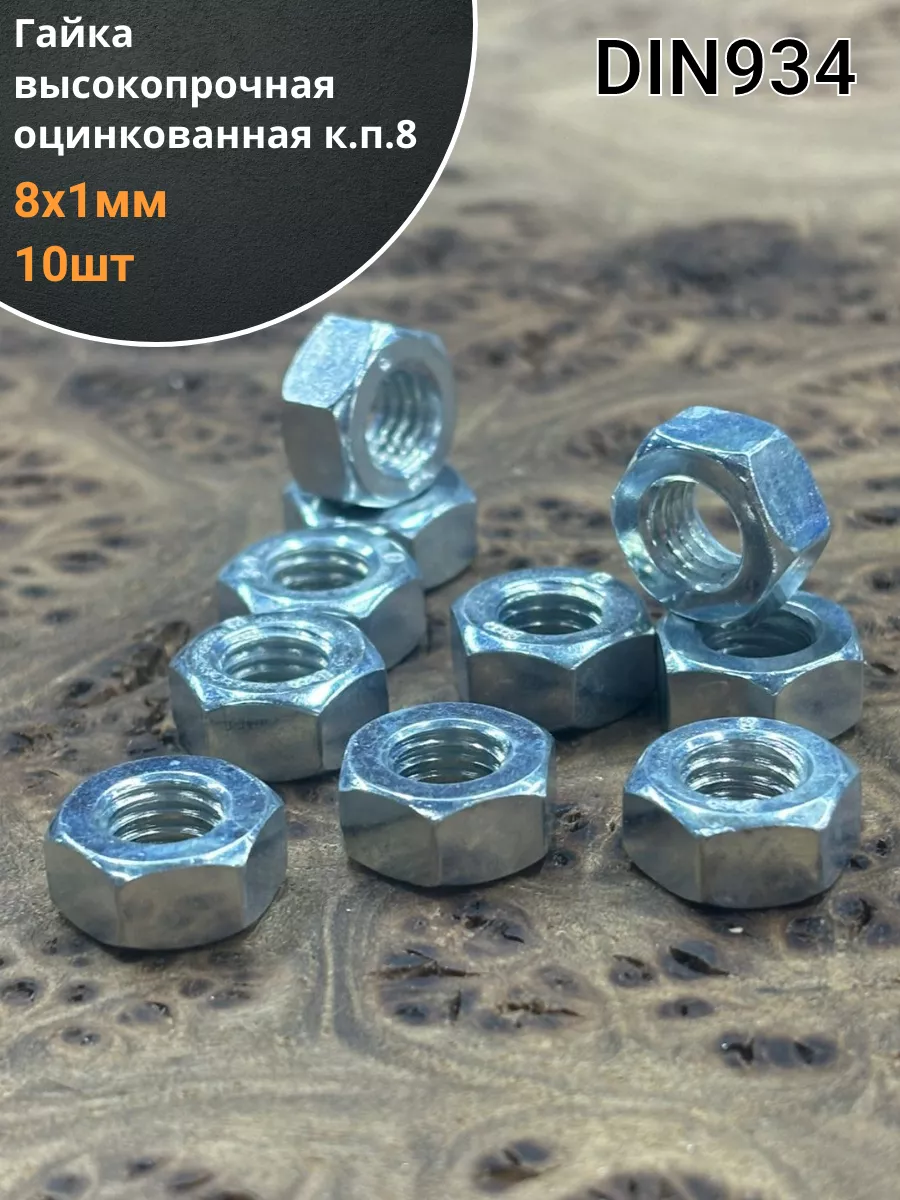 Гайка высокопрочная М8х1 ОЦ к.п.8 DIN934, 10 шт.