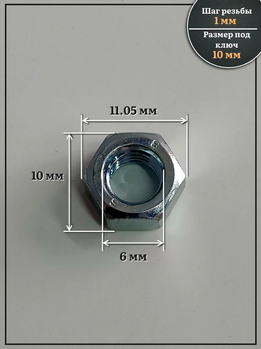 Оцинкованная гайка с левой резьбой М6 DIN 934 LH применяется в резьбовых соединениях, где есть риск самоотворота крепежа с правой резьбой. Изготовлена из стали класса прочности 8.