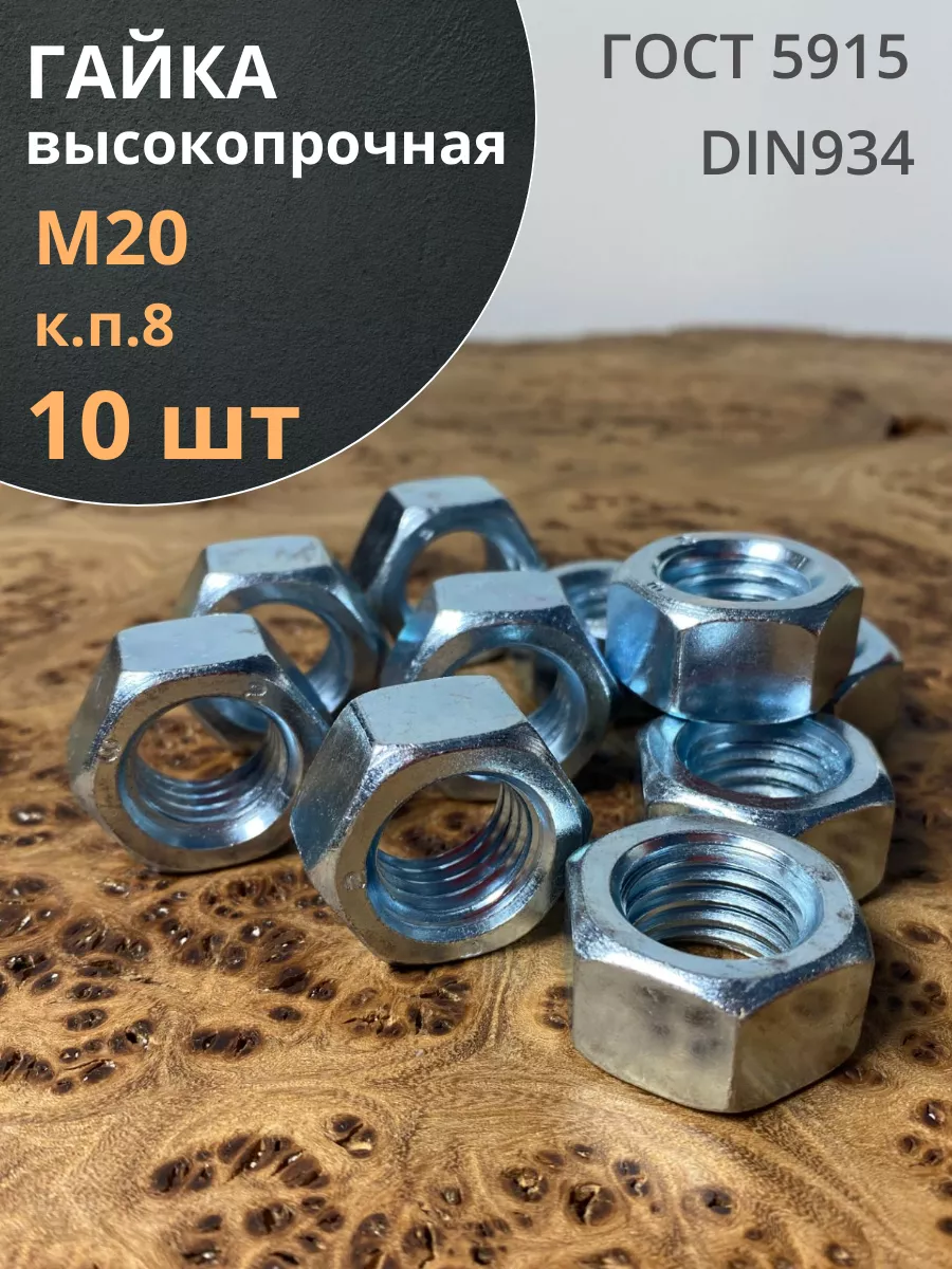 Гайка высокопрочная М20 оцинкованная к.п.8 DIN934, 10 шт.